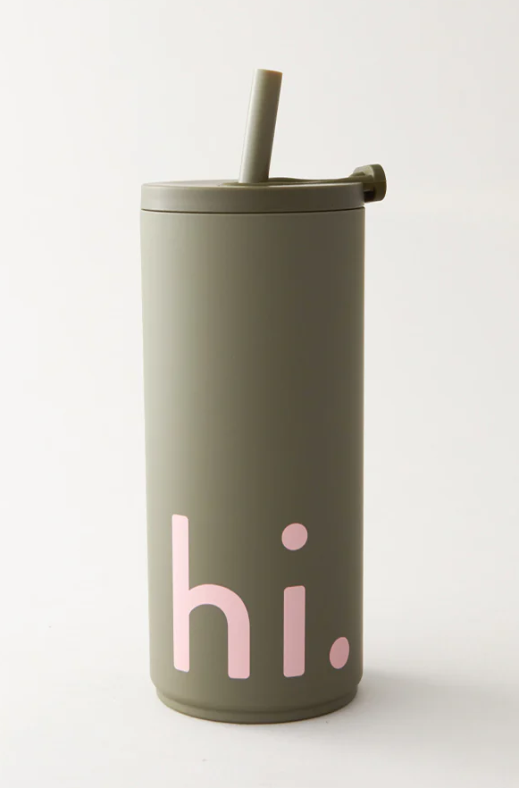 Cana de voiaj cu pai Hi grey de la brandul Design Letters.