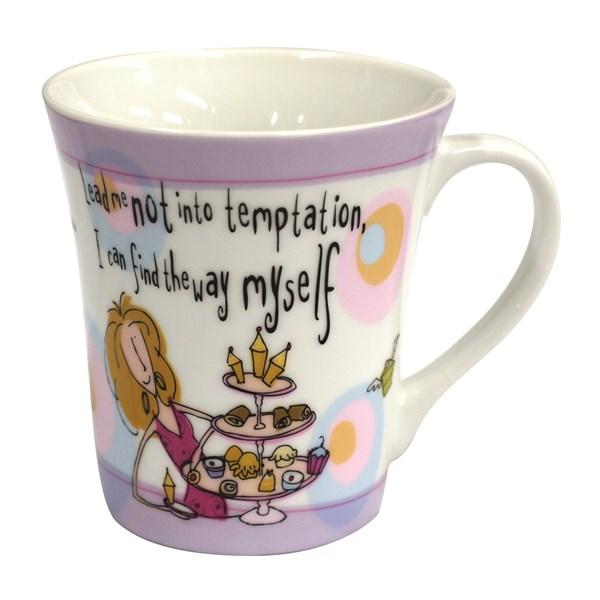 Cana de portelan inscriptionata cu mesajul - "Lead me not into temptation, i can find the way myself"