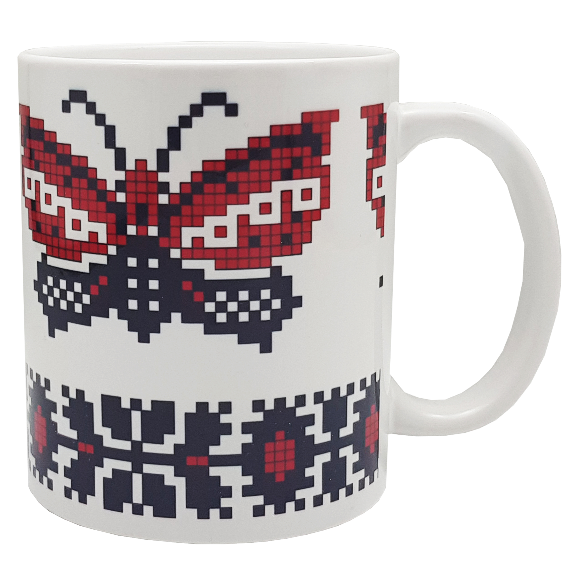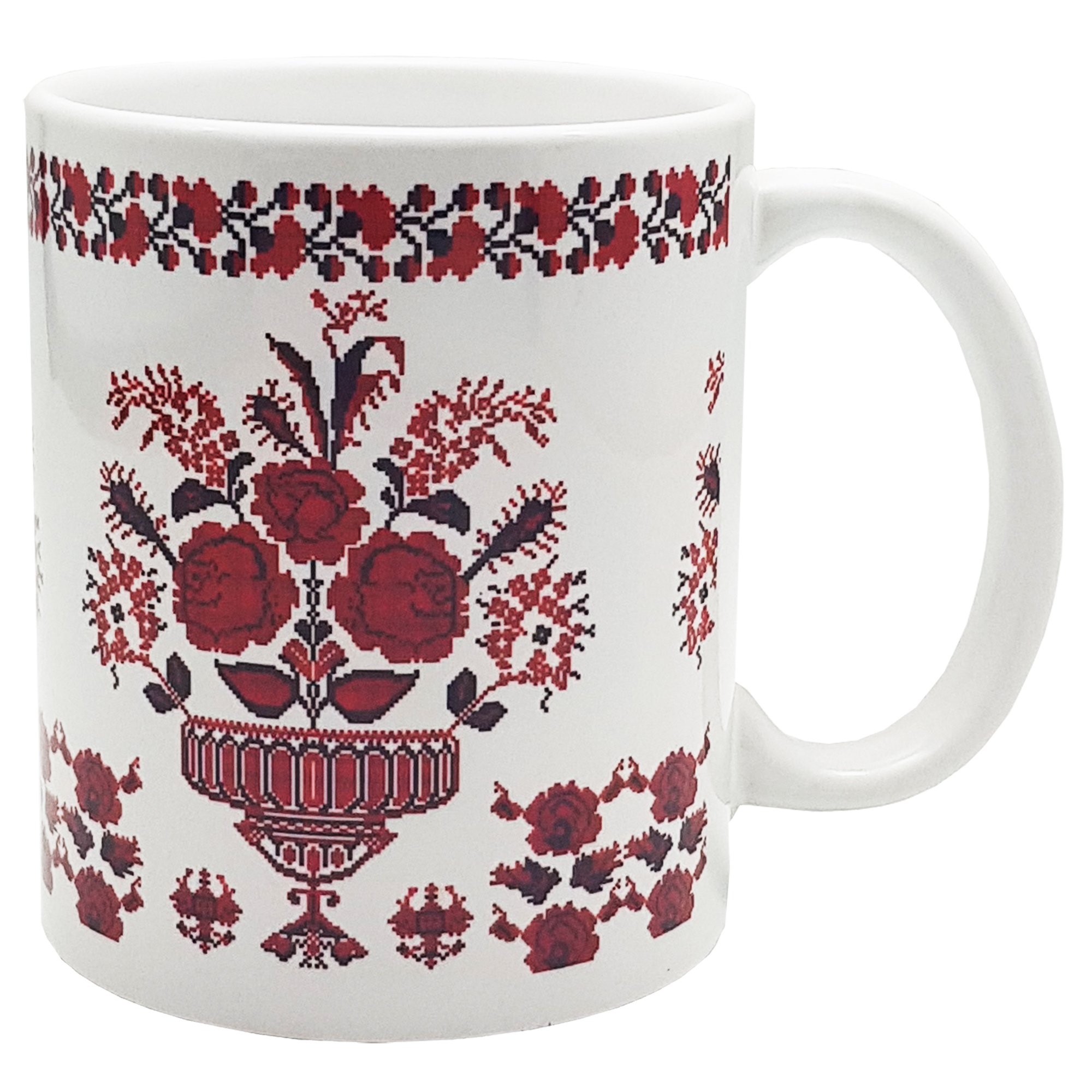 Cană din ceramică cu model tradițional românesc. Pentru cei care iubesc motivele tradiționale românești.