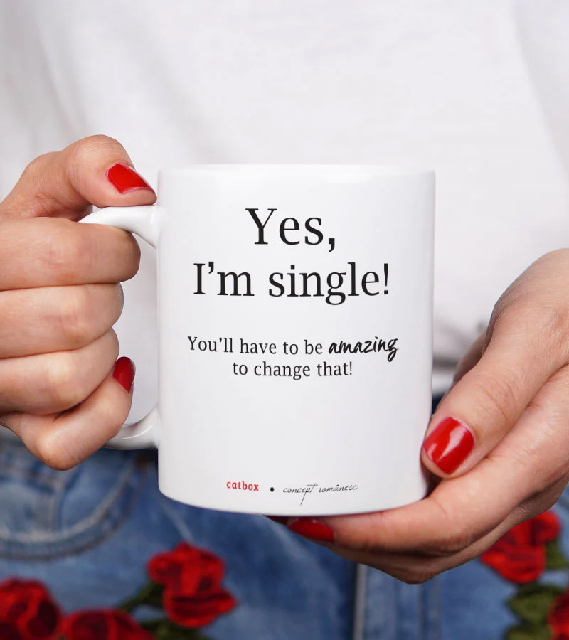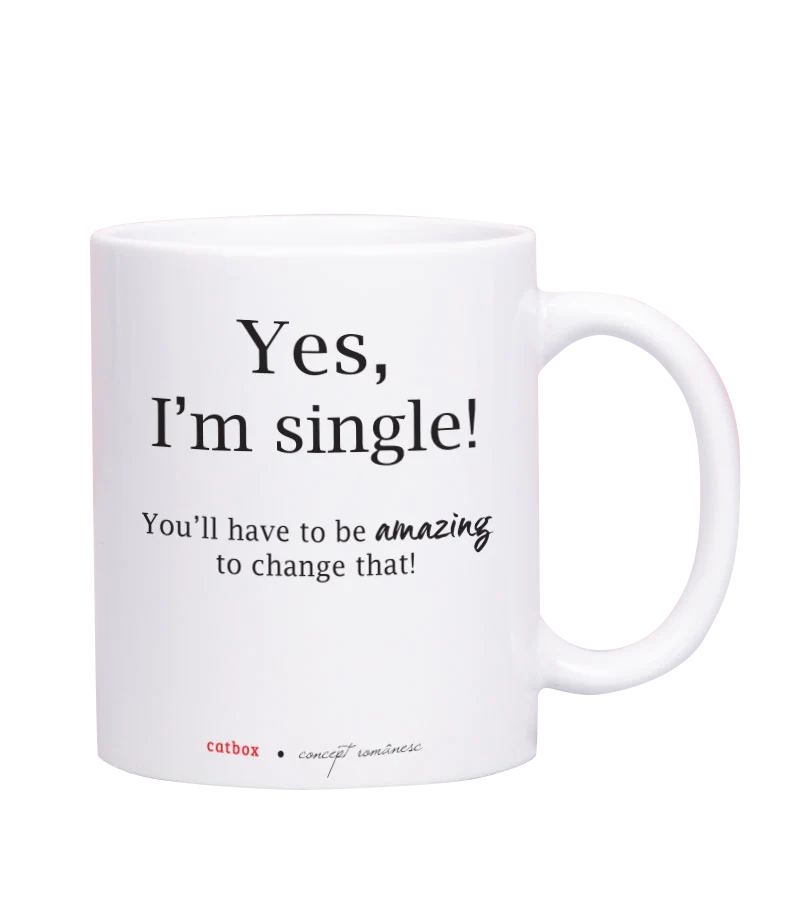 Single and Proud e o cana cadou pentru prietenii tai care tocmai au iesit dintr-o relatie, care n-au mai fost de mult intr-o relatie sau carora nu prea le plac relatiile si-s ai naibii de mandri de asta. A imprimat-o cu mesajul "Yes, I'm single! You'll have to be amazing to change that!"