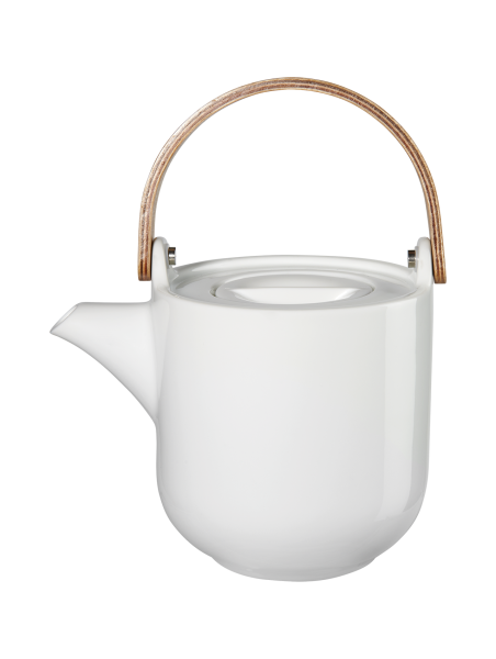 Ceainic cu maner de lemn, Alb