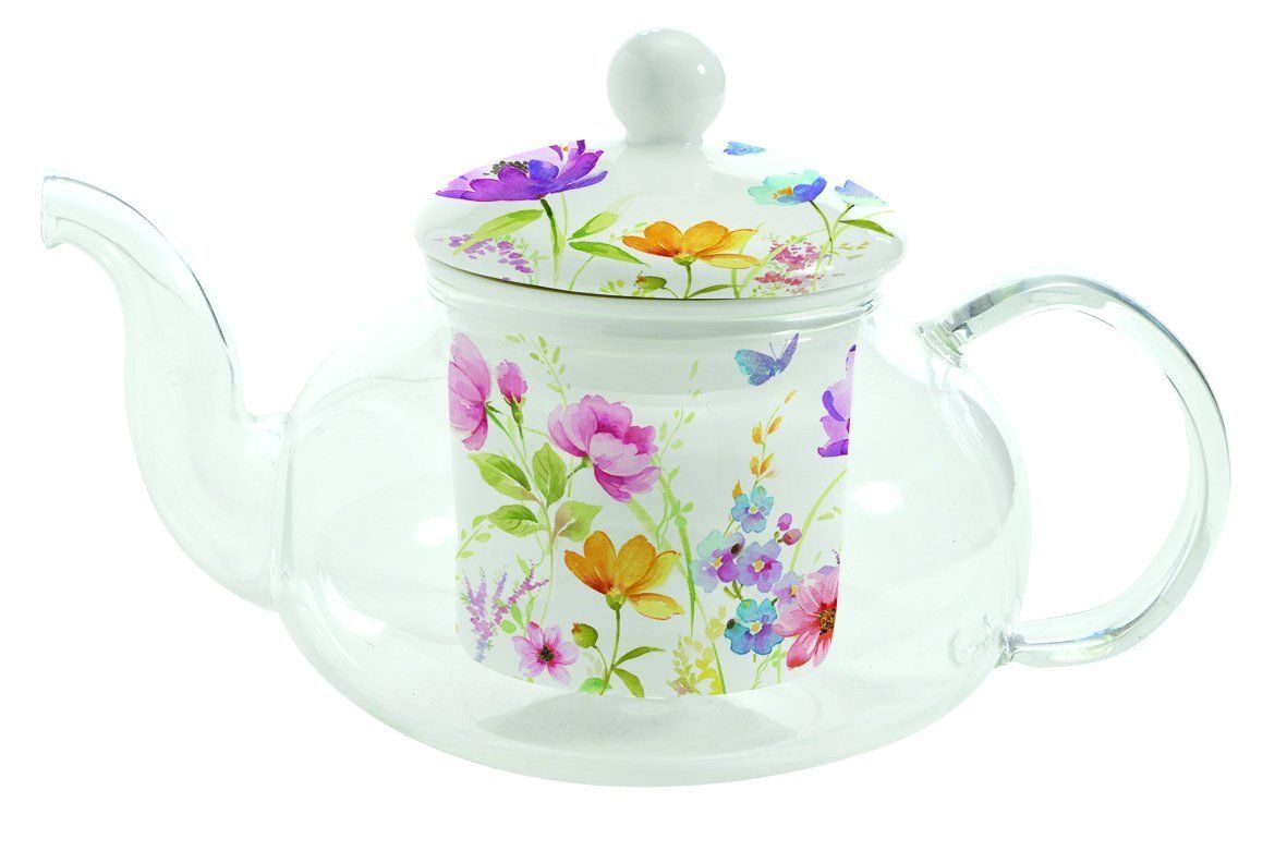 Ceainic din sticlă cu infuzor din porțelan multicolor