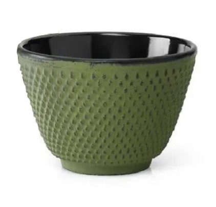 Ceașcă din fontă emailată și o capacitate de 100 ml.