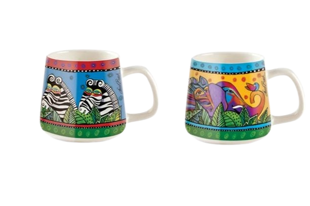 Set 2 cani din porțelan, design Laurel Burch.