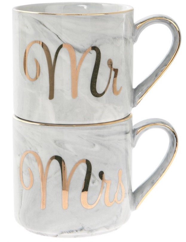 Set 2 cani - Mr & Mrs, din portelan, cu un design unic.