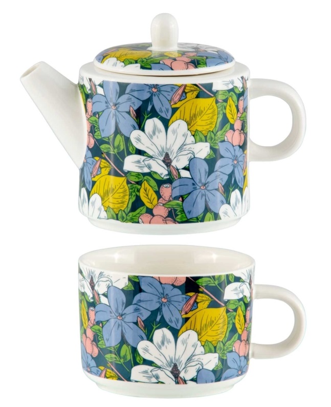 Ceainic cu ceasca - Tea for one - Famille Fleurie este format din ceainic și ceașcă, ambele decorate cu flori.