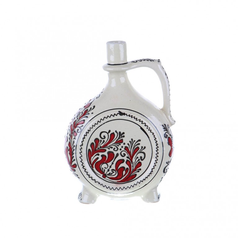 Ulciorul din ceramică roșie de Corund cucerește prin liniile sale perfecte, prin motivele tradiționale realizate cu atâta atenție și prin cromatica deosebită, specifică zonei Corundului.
