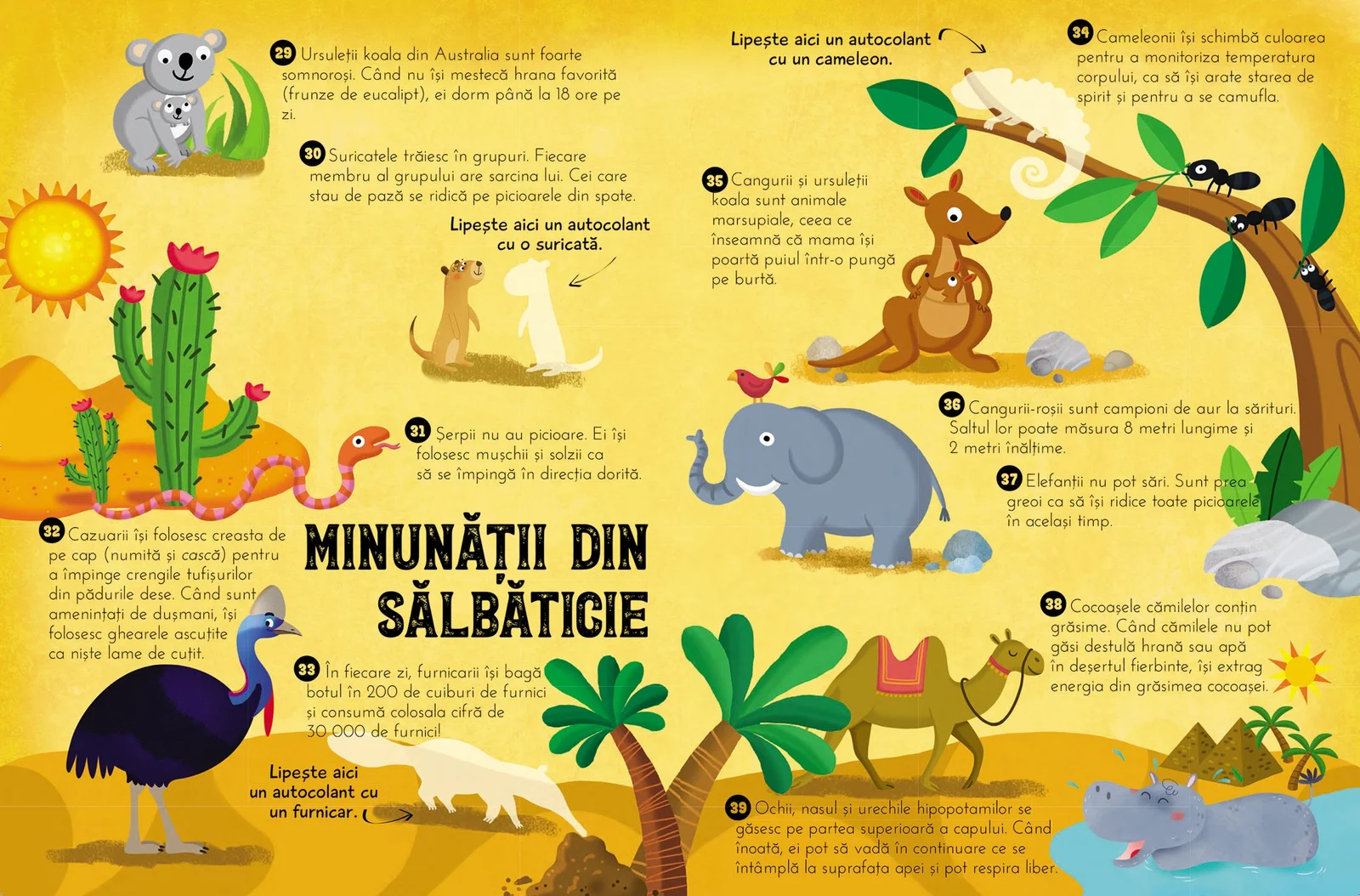 Potrivește autocolantele la informațiile corespunzătoare și pornește în aventura antrenantă de explorare a regnului animal!