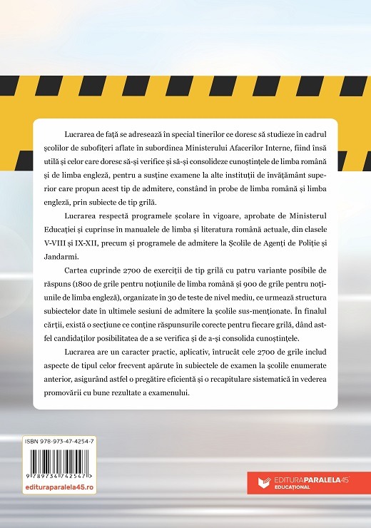 2700 de exercitii tip grila (limba romana - limba engleza) pentru admiterea in scolile de agenti de politie si subofiteri M.A.I.