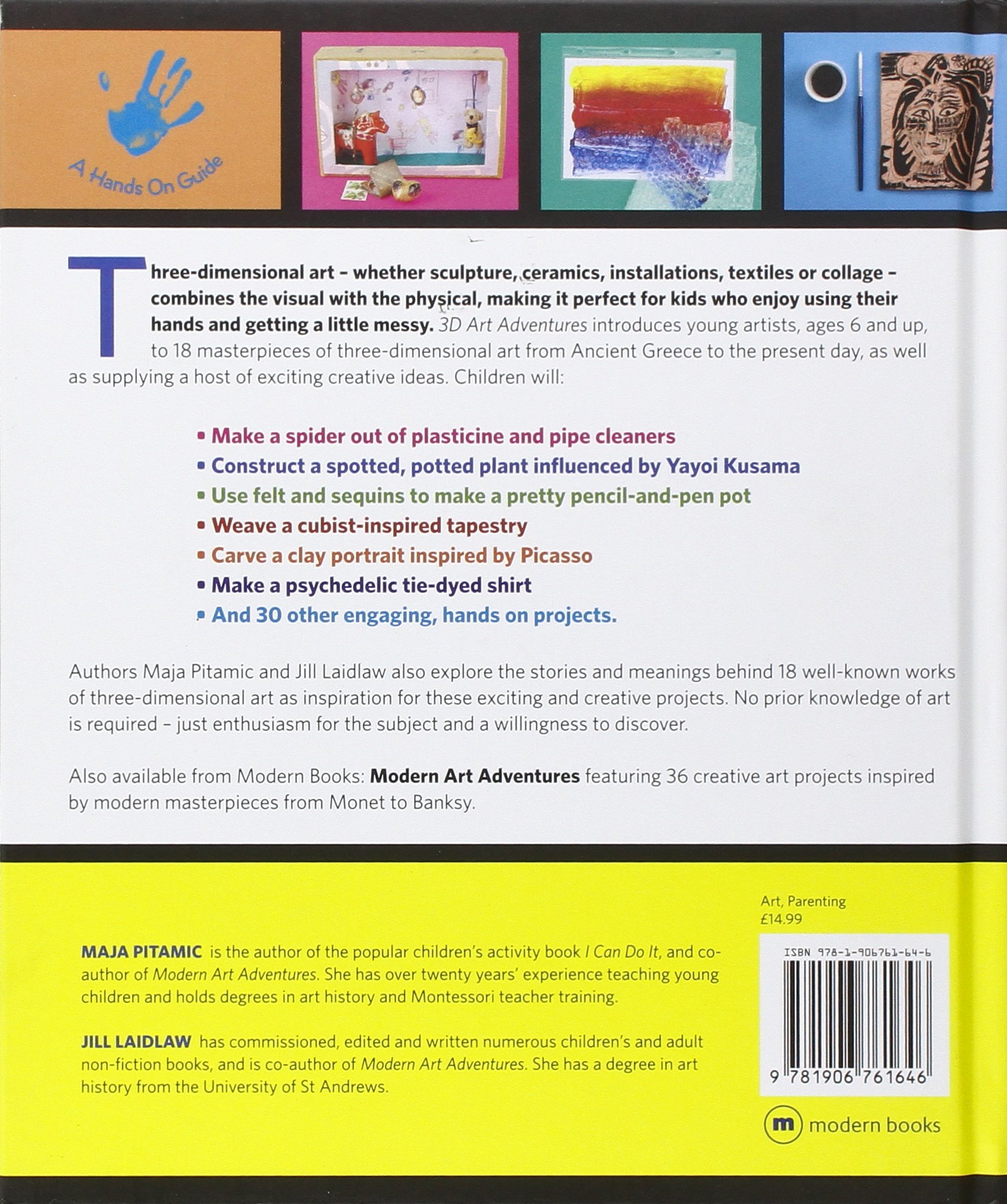 3D Art Adventures explores the stories and meanings behind 18 sculptures, ceramics, and other ground-breaking masterpieces of 3-dimensional art as inspiration for children to create 36 exciting and creative projects. Perfect for ages 6 and up.