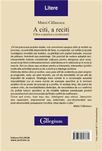 „Pe tot parcursul acestui studiu, ma concentrez asupra citirii si recitirii ca procese, ca activitati dependente de timp, ca explorari, ca vizitari si (poate nostalgice) revizitari ale textelor, ca plimbari prin paduri textuale, excursii de placere, hoinareli sau pelerinaje. Din punctul de vedere adoptat aici, interpretarile trebuie considerate mijloace pentru atingerea unui scop, acest scop fiind continuarea lecturii, extinderea ei in relectura si in scris si rescris. Aici nu citesc sau recitesc pentru a interpreta; interpretez (printre multe alte activitati) pentru a citi, a reciti si a intelege recitirea. Distinctia dintre citire si recitire, care pare atit de evidenta pe plan empiric si pragmatic, este, pe plan teoretic, pe cit de inevitabila, tot pe atit de imposibil de sustinut. Strategia mea consta in a recunoaste aceasta imposibilitate (cu un mare numar de exemple specifice si in termeni analitici cit se poate de precisi) si a profita, in acelasi timp, din punct de vedere critic, de inevitabilitatea distinctiei, de necesitatea de a o reafirma (in pofida tuturor aporiilor) si de intuitiile adesea paradoxale privind procesul lecturii carora le poate da fiinta o astfel de reafirmare.” (Matei Calinescu)