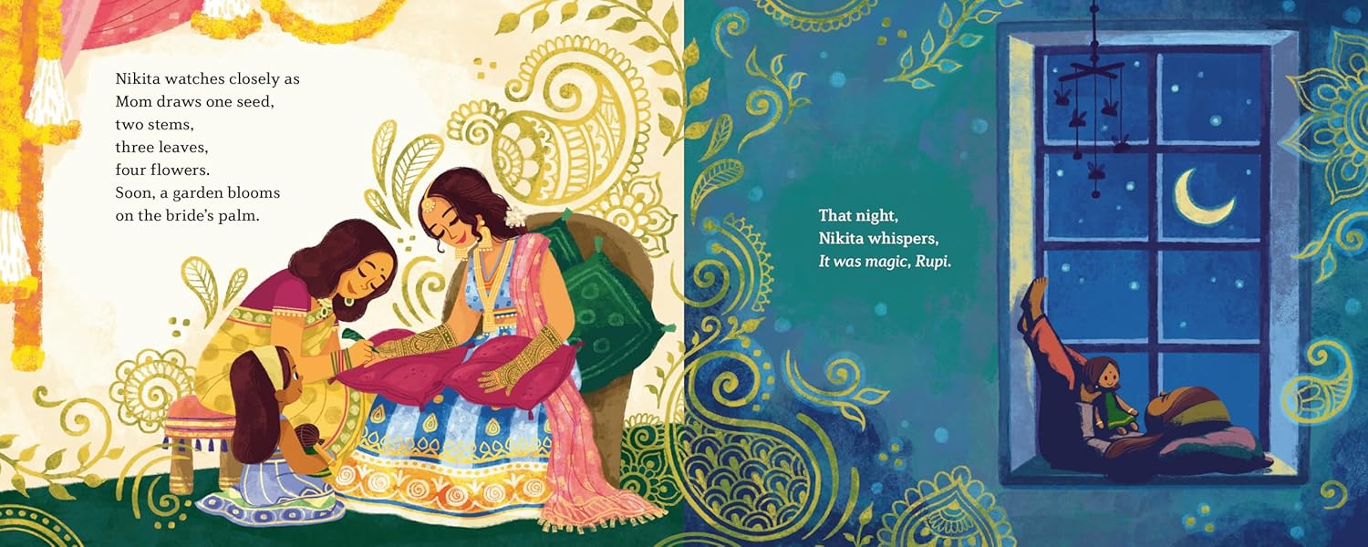 Nikita is part of a long line of henna artists. Her grandmother even brought a treasured notebook of designs with her to the US when she moved here from India. But the first time Nikita tries to make henna art, the mehndi paste looks like an ugly blob, and she feels like giving up. Still, she continues watching her mother and grandmother make gardens bloom on hands and is intrigued by the beauty of it all. Will she find the courage to try again?