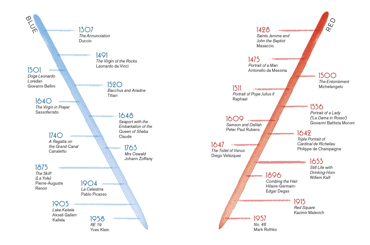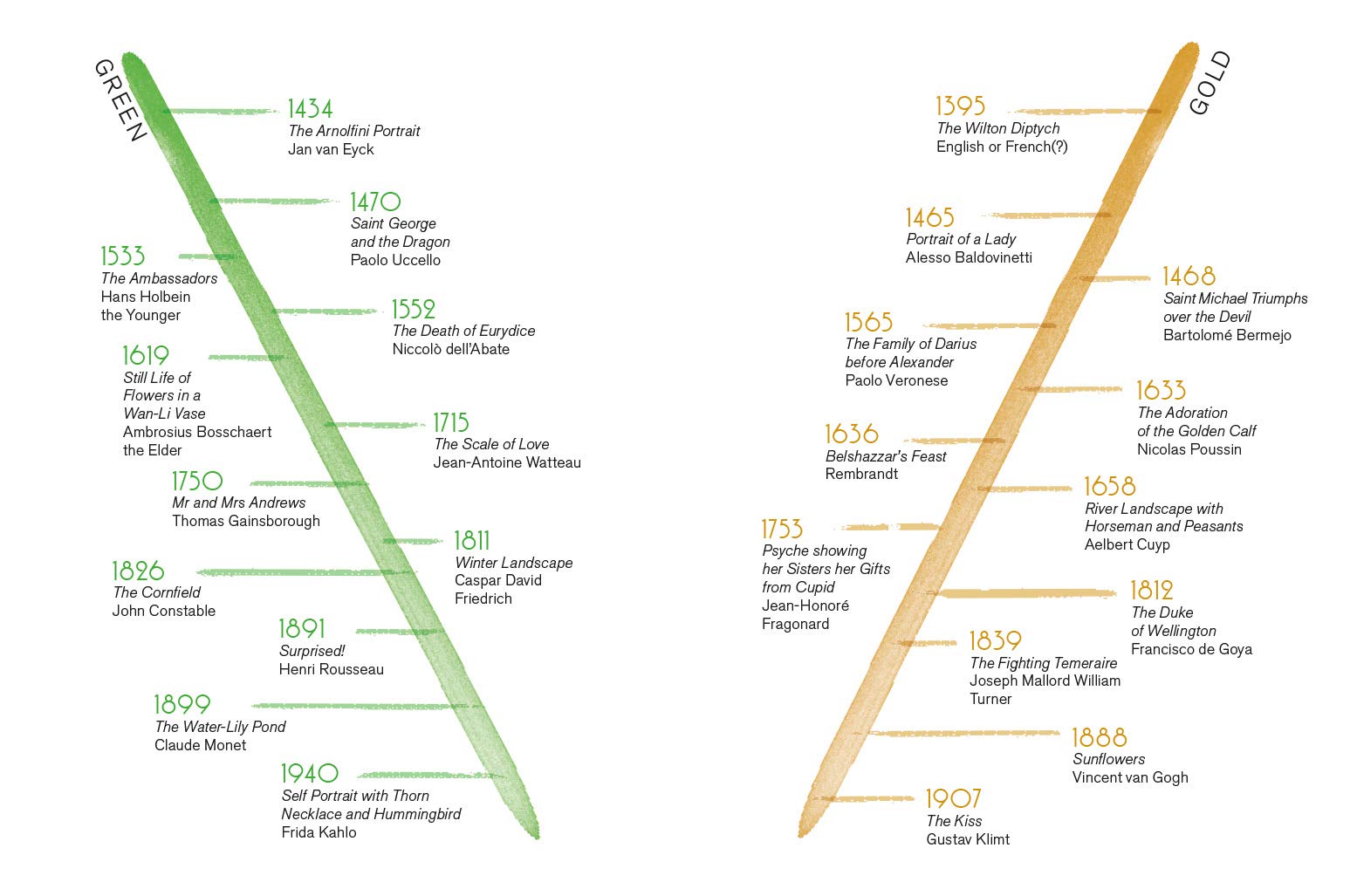 These four colours tell the story of art in a way that few other elements can. From the pigments used to make them - sometimes wildly expensive, like ultramarine, or dangerously toxic, like emerald green - to the varied and changing meanings applied to them, these colours grant us access to fascinating stories, both of individual works of art and the world in which they were created.