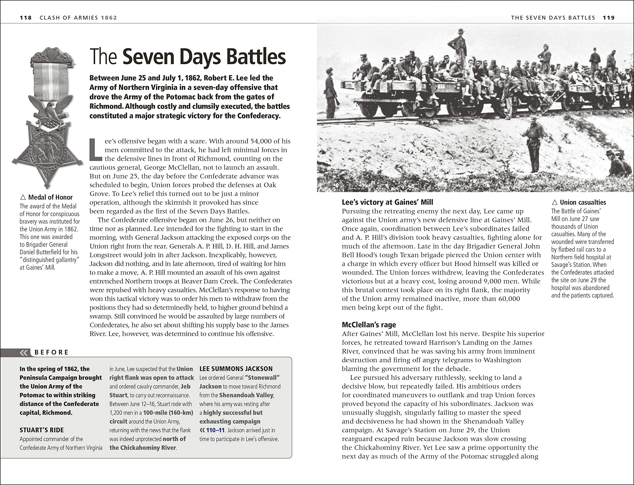 Profiles of influential military and political leaders, and thought-provoking features on themes and experiences, from the evils of slavery to the treatment of wounded soldiers, bring the story dramatically to life. This book also features clear timelines that give an instant overview of the developments during the tumultuous war.