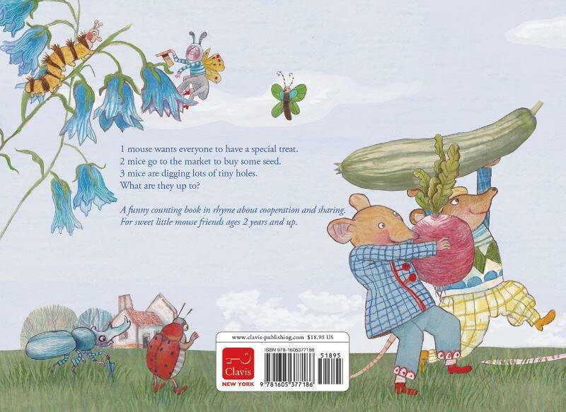 A funny counting book in rhyme about cooperation and sharing. For sweet little mouse friends ages 2.5 years and up.