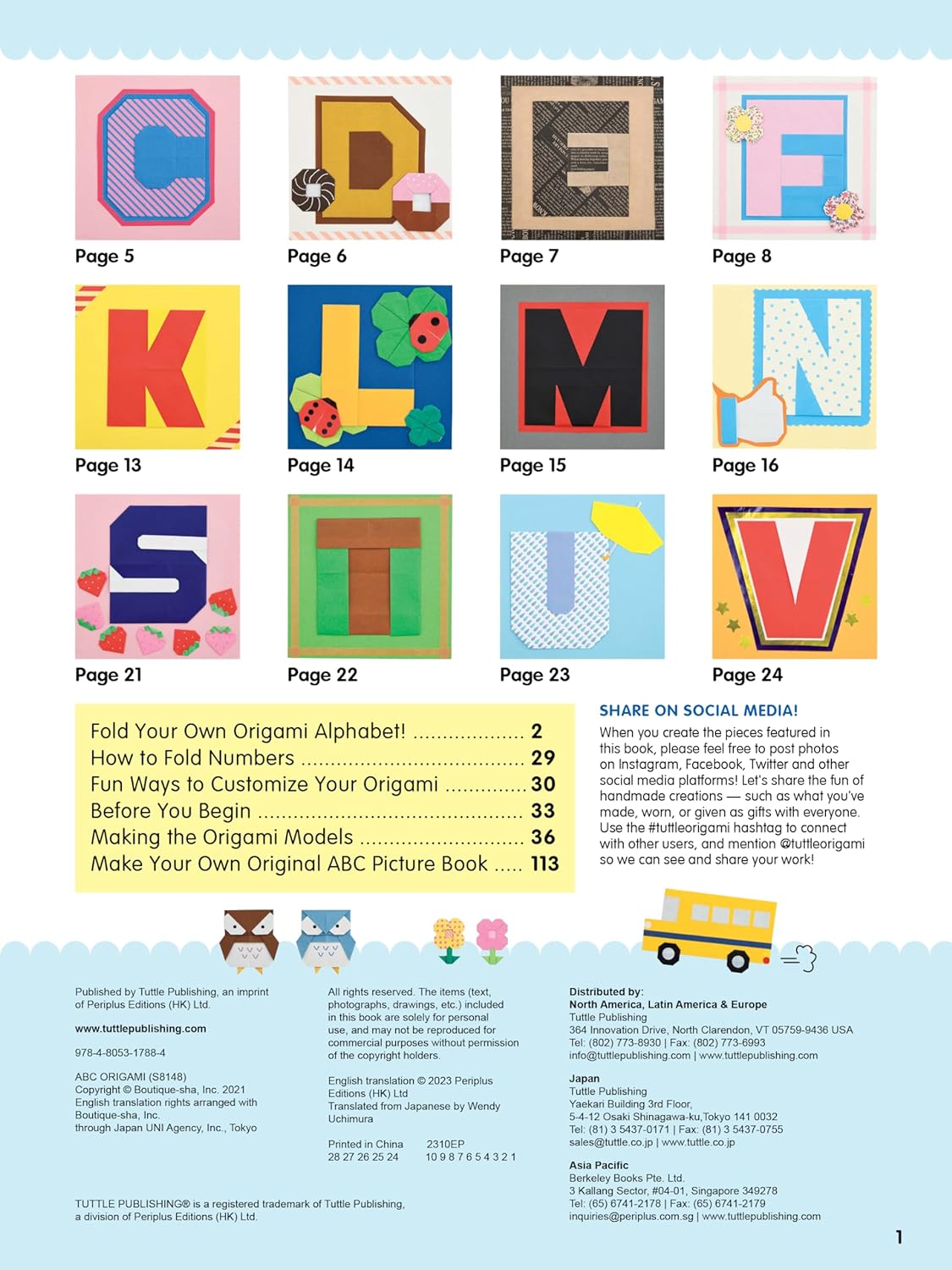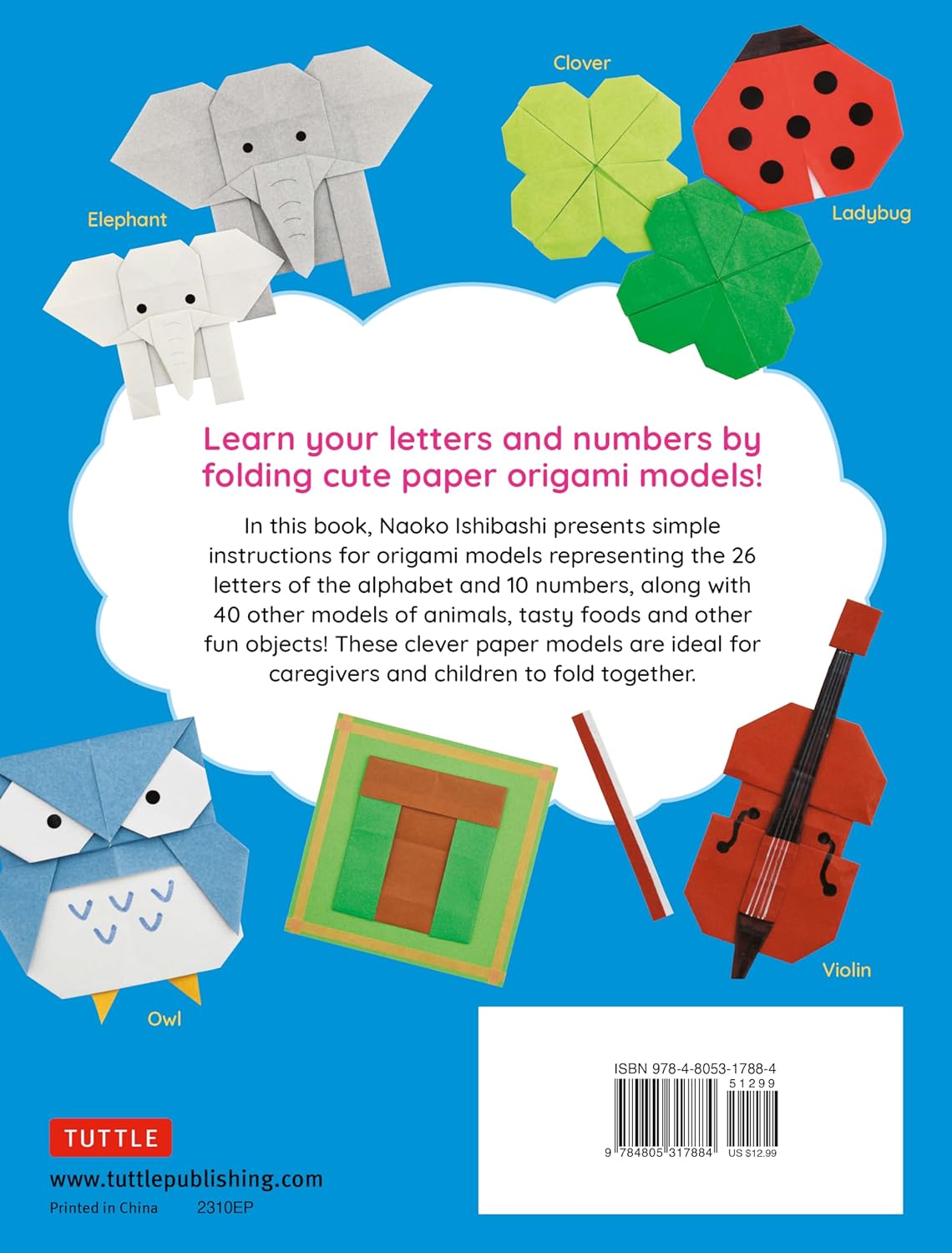 Naoko Ishibashi is Japan's #1 bestselling designer of origami models for children. In this book, she presents simple instructions for models containing the 26 letters of the alphabet and 10 numbers, along with 40 other models of animals, tasty foods and other fun objects!
