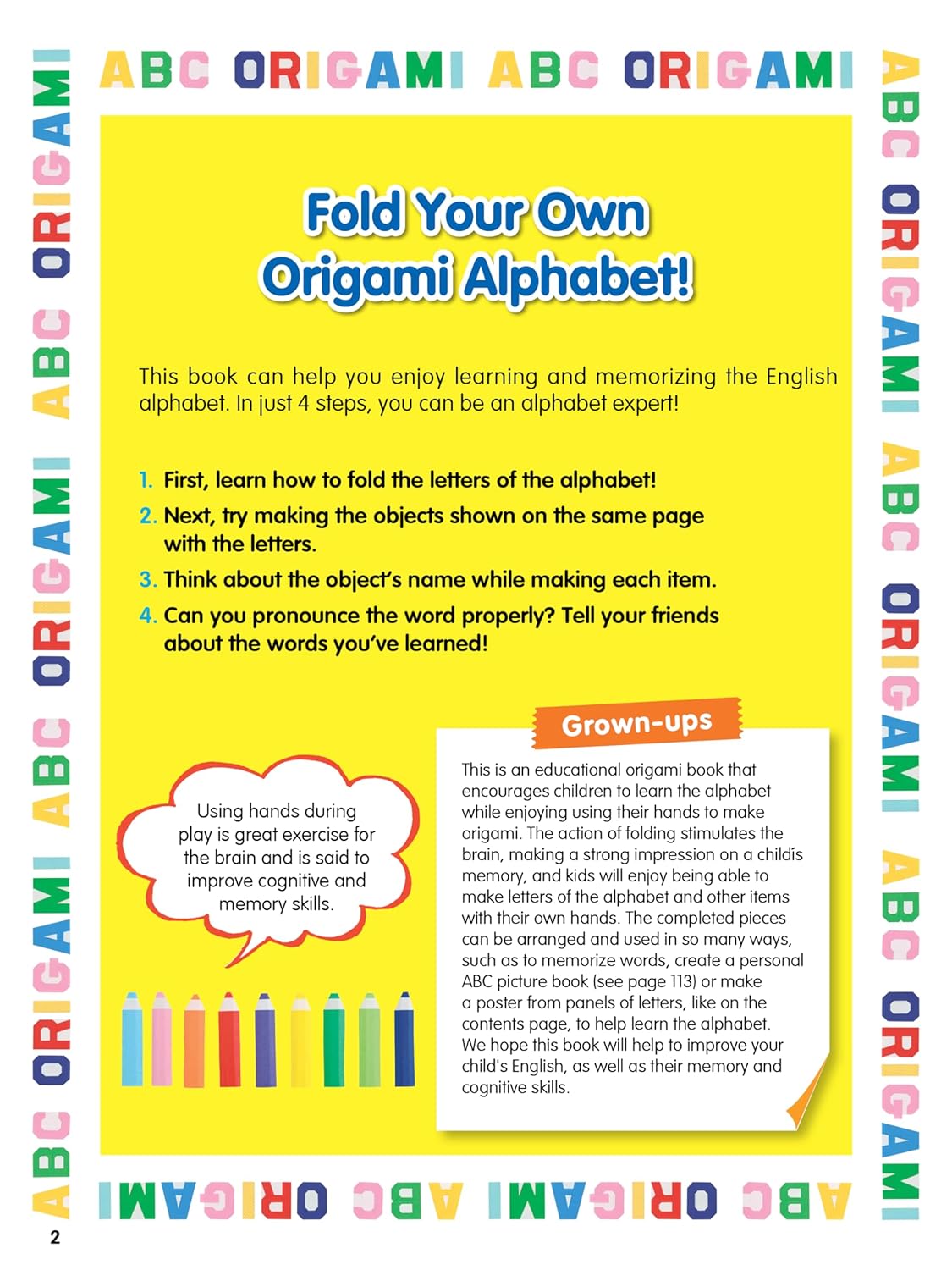 Origami offers kids the chance to engage their minds and develop their motor skills. Older children will enjoy combining the letters into words and names, and making decorative banners for special events or bulletin boards. The author even shows you how to create a personalized scrapbook with your paper models!