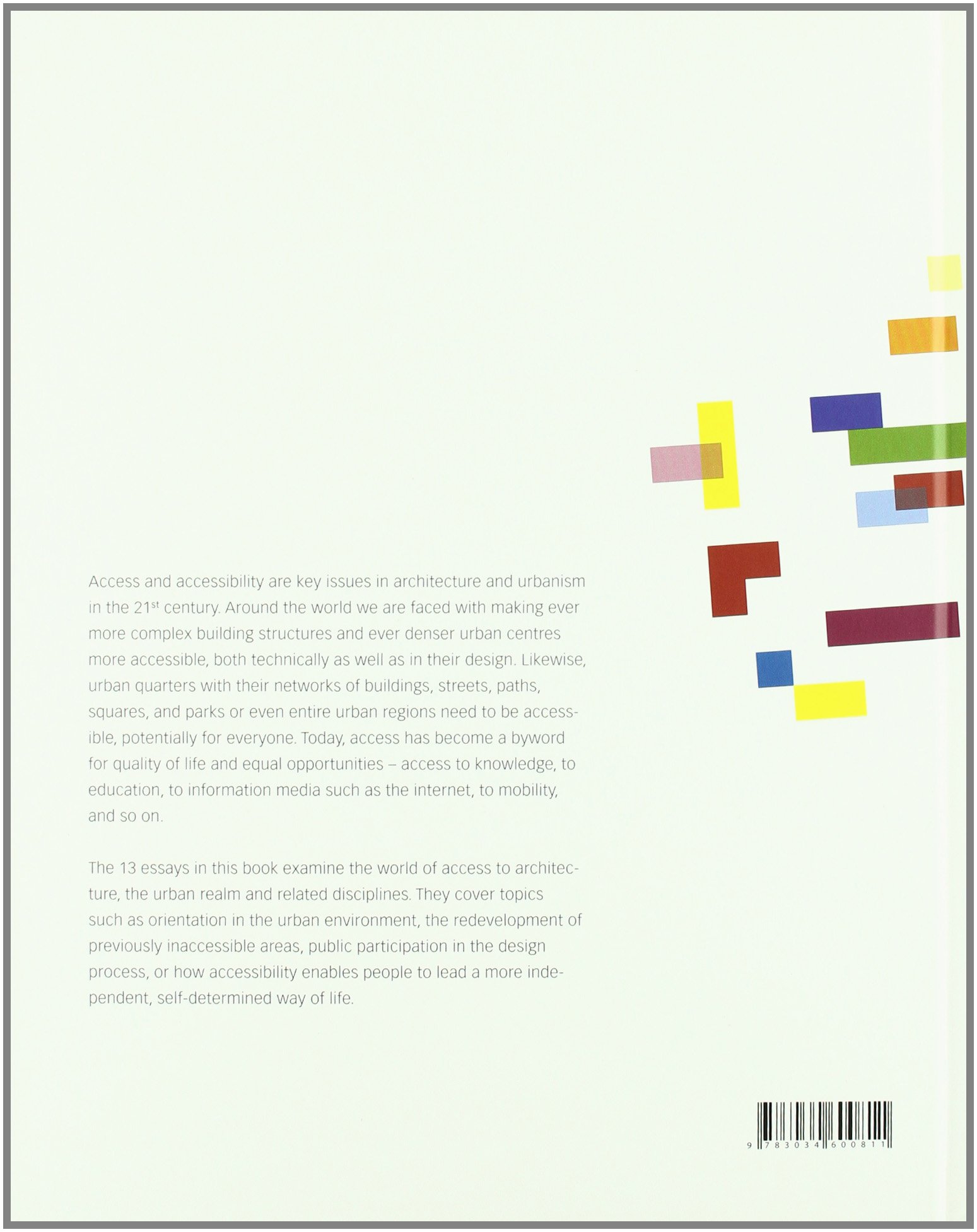 Access and accessibility are central themes in architecture and urbanism. The goal is to make buildings accessible both horizontally and vertically, as well as to provide them with technical infrastructure. But the aim is also to ensure the accessibility of whole streets, routes, parks, and squares, and even entire cities and regions. Today, access is a key concept in the most disparate areas of life. Thus, it is also a matter of access to knowledge and education, access to knowledge media like the Internet, access to healthcare, access to languages, etc. In thirteen articles, this book deals with this world of access in architecture, city planning, and neighboring fields. Topics include ensuring the accessibility of entire urban areas, renewing that of areas that were previously utilized differently, including the general populace in concept planning, and how architecture can help provide access to a better quality of life.
