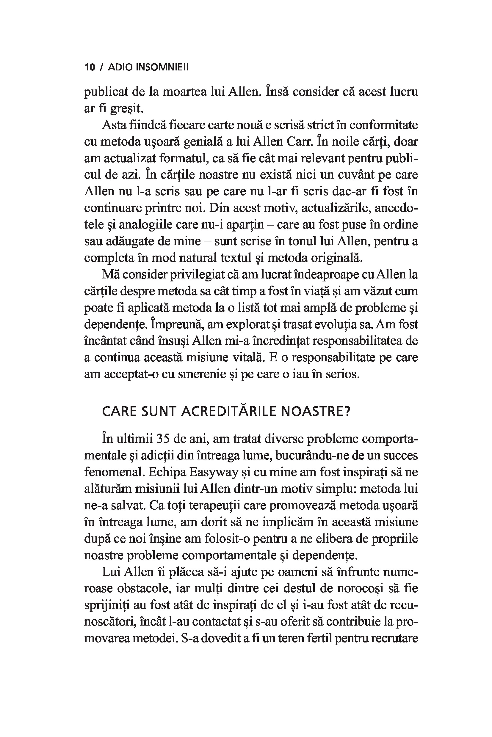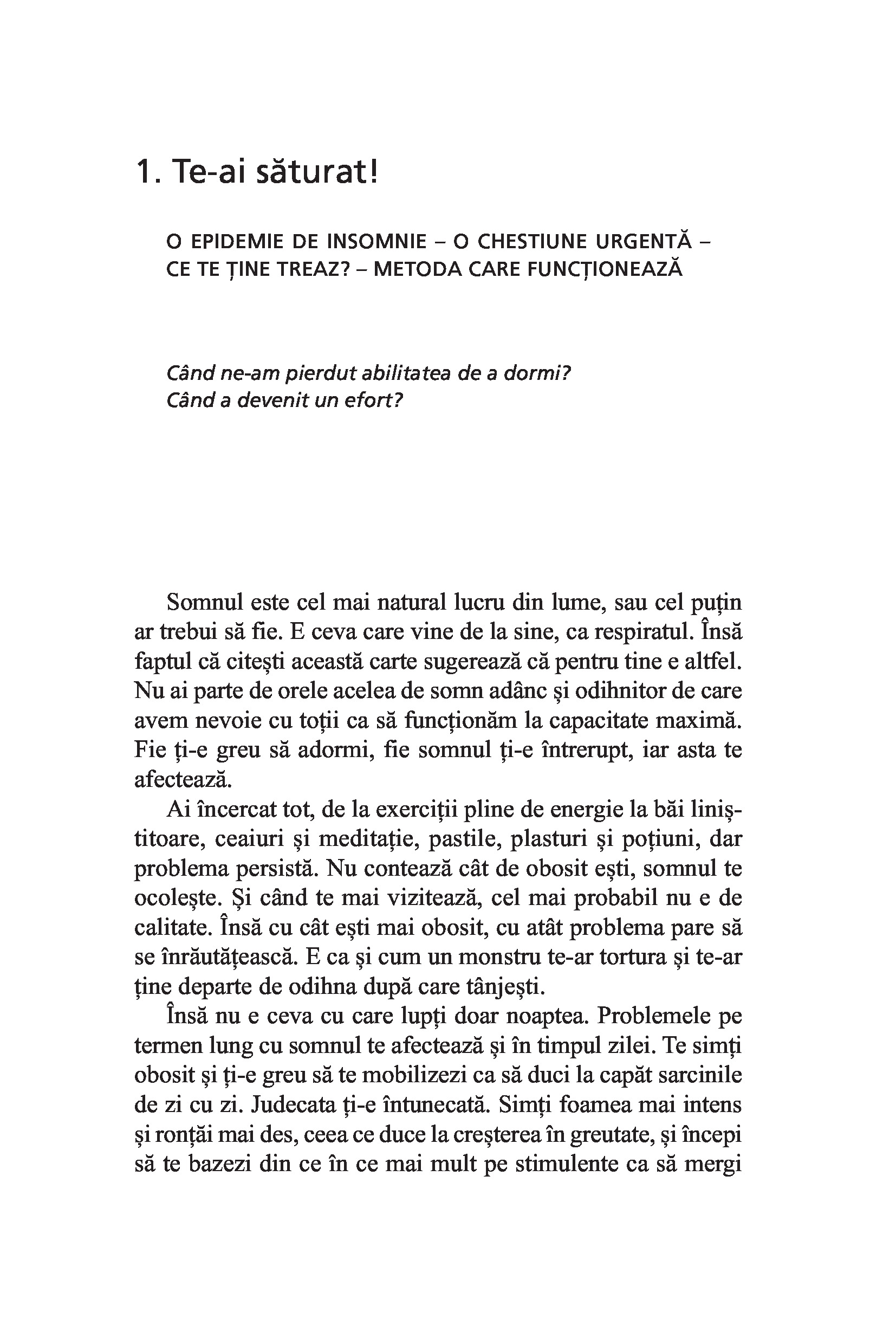 În cartea de față, metoda e aplicată dificultăților legate de somn. Viața modernă, cu ritmul ei trepidant, cadrul competitiv, zilele lungi de lucru, te privează de somnul odihnitor și revigorant.
