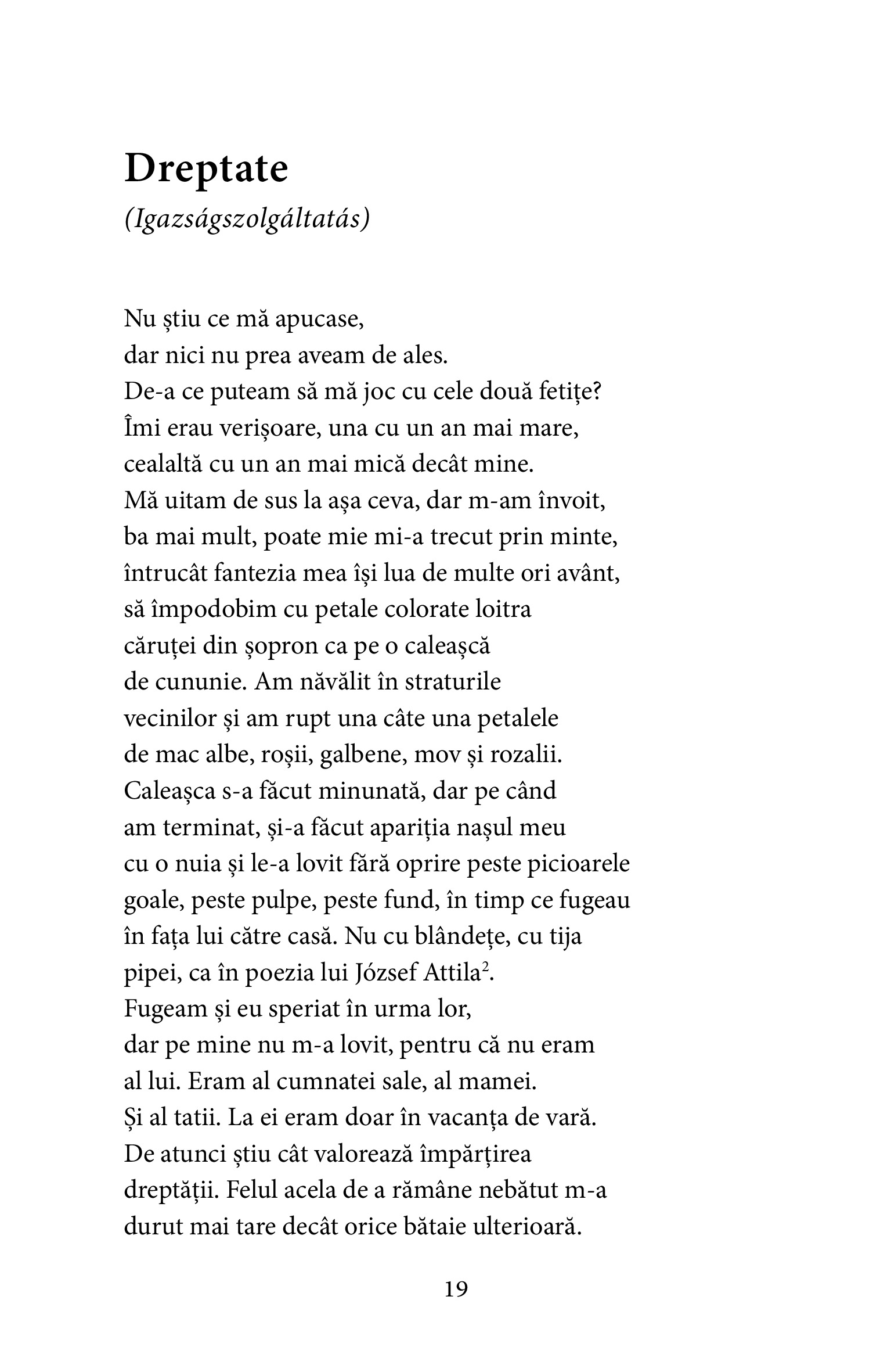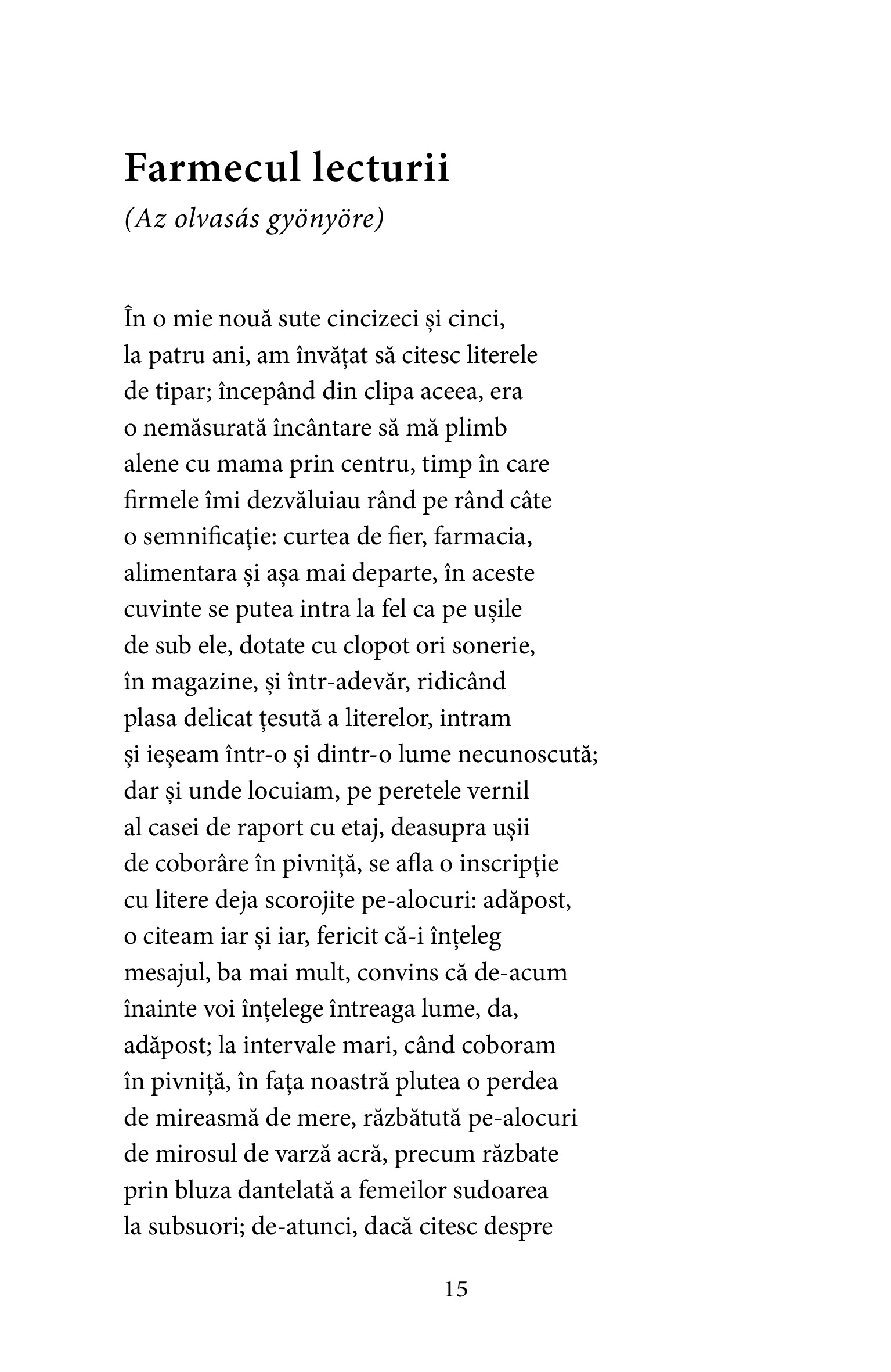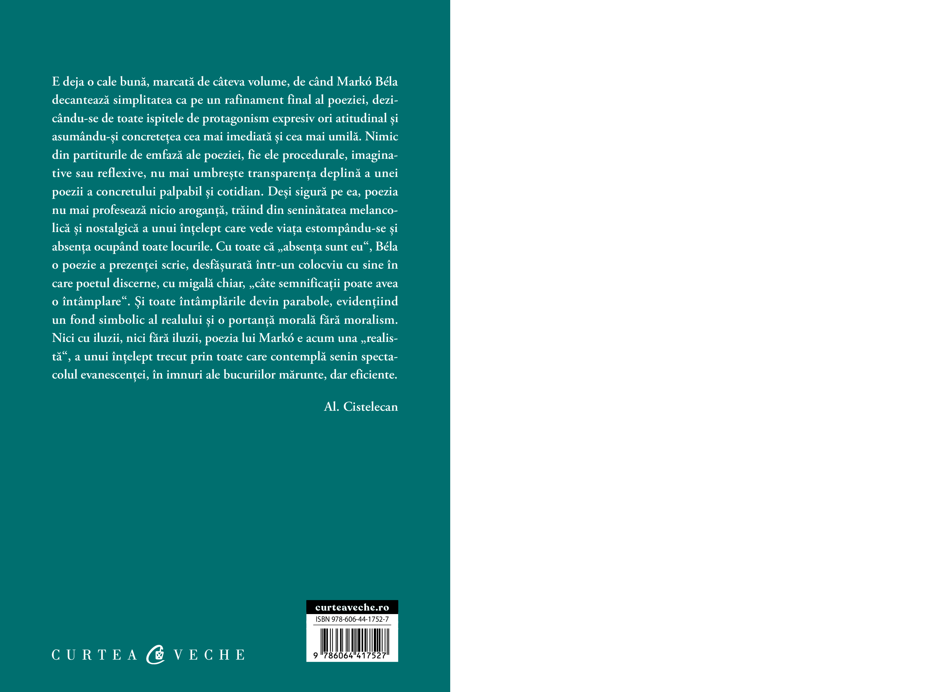 E deja o cale bună, marcată de câteva volume, de când Markó Béla decantează simplitatea ca pe un rafinament final al poeziei, dezicându- se de toate ispitele de protagonism expresiv ori atitudinal și asumându-și concretețea cea mai imediată și cea mai umilă.