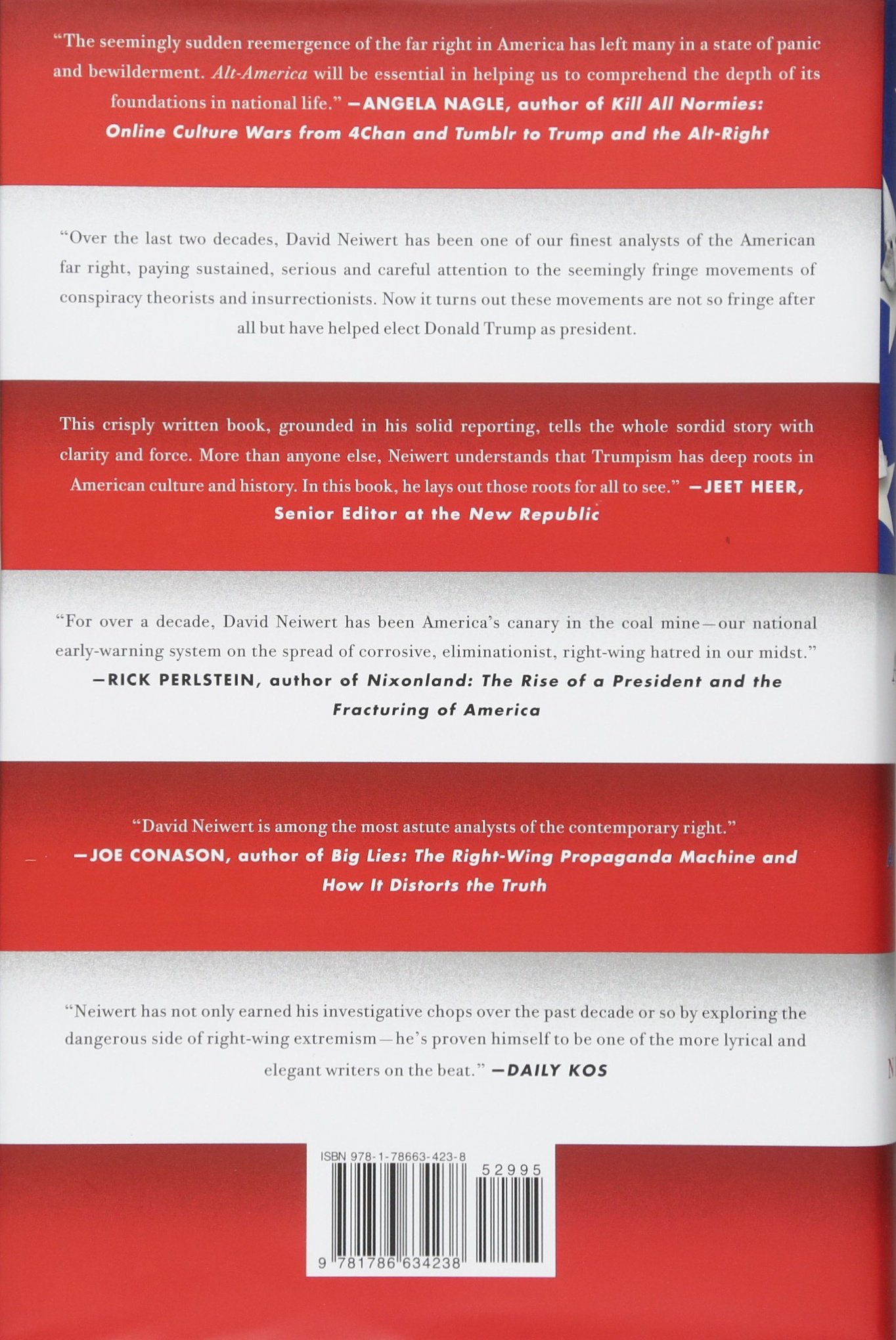 Just as Donald Trump's victorious campaign for the US presidency shocked the world, the seemingly sudden national prominence of white supremacists, xenophobes, militia leaders, and mysterious 'alt-right' figures mystifies many. But the American extreme right has been growing steadily in number and influence since the 1990s with the rise of patriot militias. Following 9/11, conspiracy theorists found fresh life; and in virulent reaction to the first black US president, militant racists have come out of the woodwork. Nurtured by a powerful right-wing media sector in radio, TV, and online, the far right, Tea Party movement conservatives, and Republican activists found common ground. Figures such as Stephen Bannon, Milo Yiannopoulos, and Alex Jones, once rightly dismissed as cranks, now haunt the reports of mainstream journalism. Investigative reporter David Neiwert has been tracking extremists for more than two decades. In Alt-America, he provides a deeply researched and authoritative report on the growth of fascism and far-right terrorism, the violence of which in the last decade has surpassed anything inspired by Islamist or other ideologies in the United States. The product of years of reportage, and including the most in-depth investigation of Trump's ties to the far right, this is a crucial book about one of the most disturbing aspects of American society.