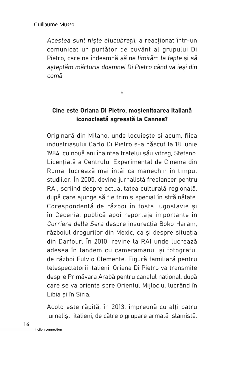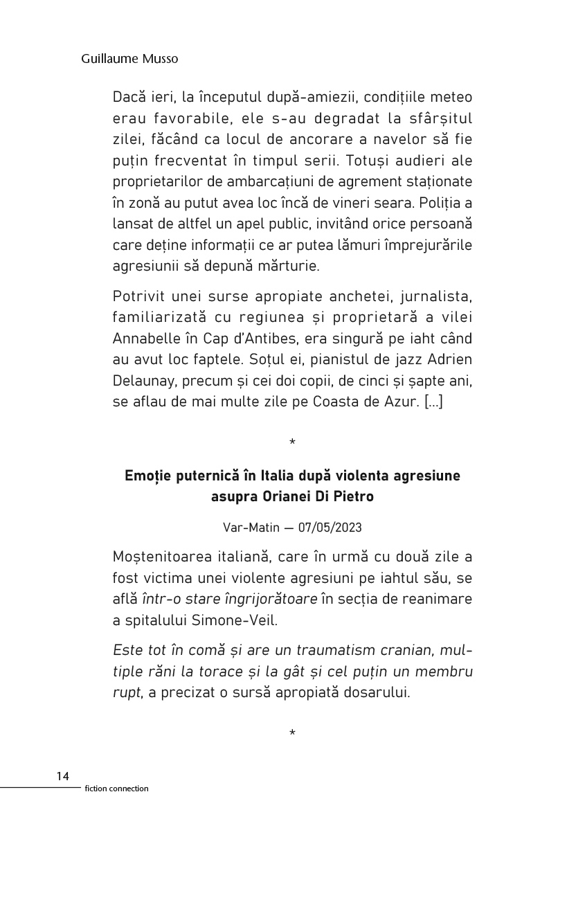 Fascinant și îndrăzneț, acest thriller psihologic imprevizibil este unul dintre cele mai reușite romane ale lui Guillaume Musso.