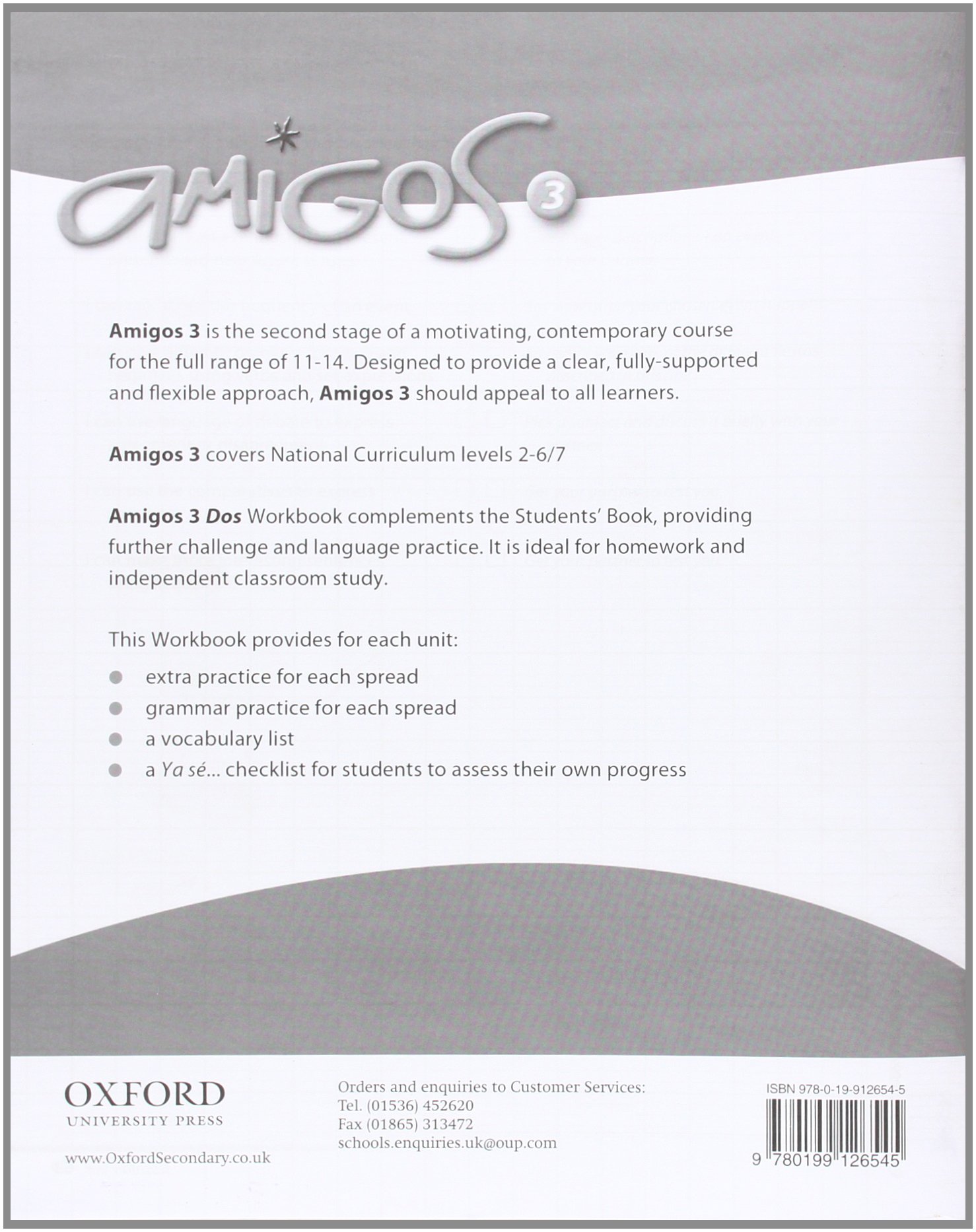 Amigos 3 is the third part of a new contemporary Key Stage 3 Spanish course, designed specifically for Year 7 starters. Amigos is a 3-part Spanish course, so there is one part per year at Key Stage 3, making planning and course delivery much smoother. Parts 1-3 are single-tier in format (with differentiation being supplied in the Higher and Lower Workbooks, differentiated Copymasters, extension and support section and differentiated reading section at the back of the Students' Book). This fully-integrated course includes the following components: Students' Book, Workbook (Higher), Workbook (Lower), Copymasters, Teacher's Book, Audio CDs, ICT package (Students' and Teacher's), Coursemaster. The Amigos Workbook (Higher) contains material that is at a higher level than the Students' Book to provide further extension. For each unit there is the following material: one page of activities for each Students' Book spread (reading and writing activities); the unit vocabulary list; one page of grammar per unit; one page of material at a slightly higher level (to provide further differentiation) and a Ya se...checklist.