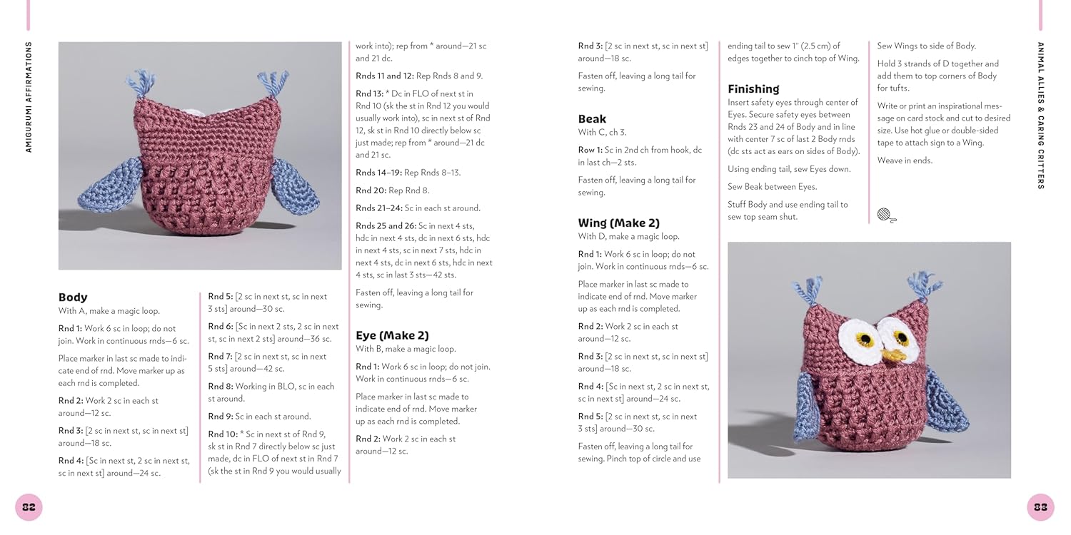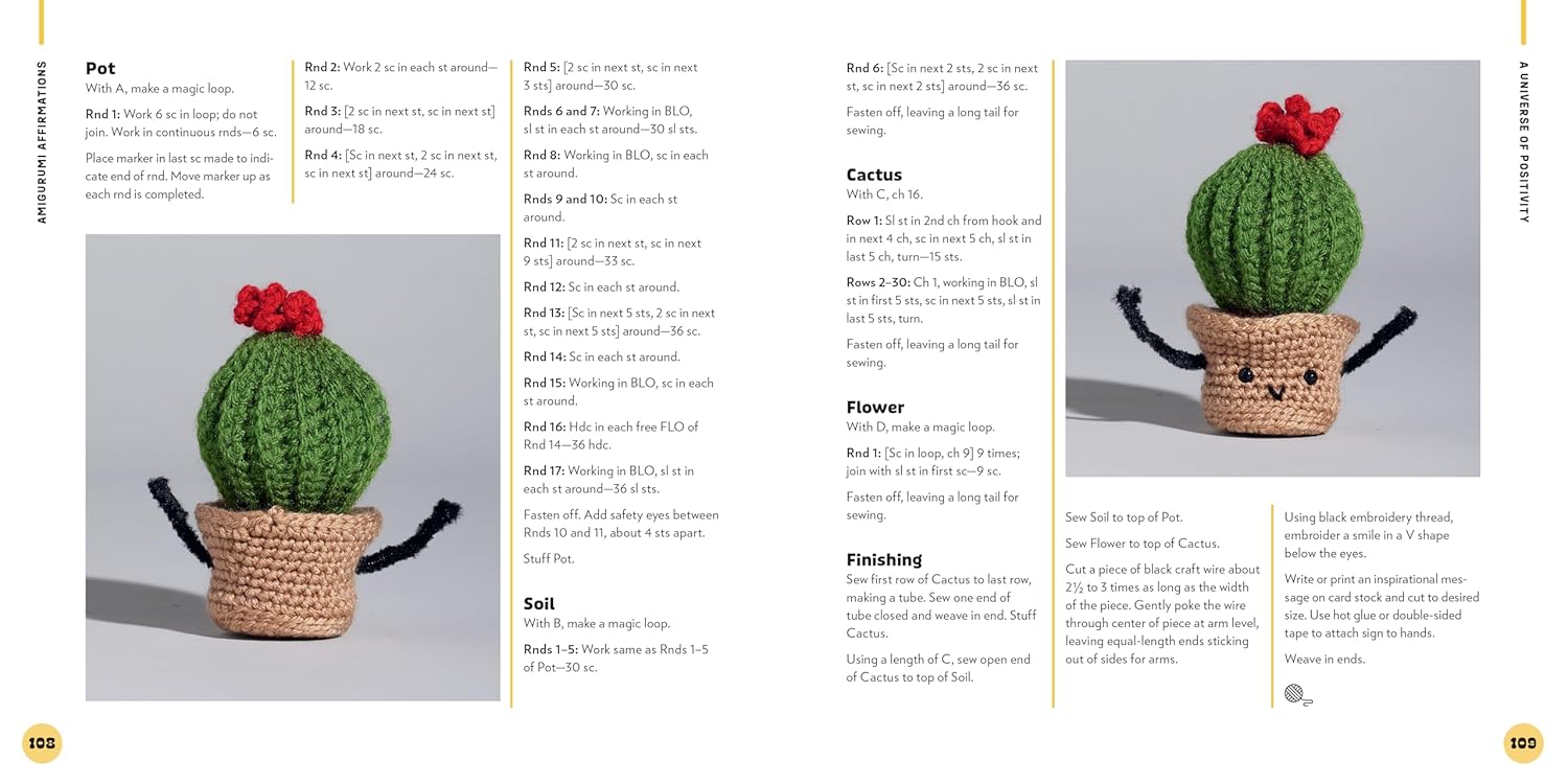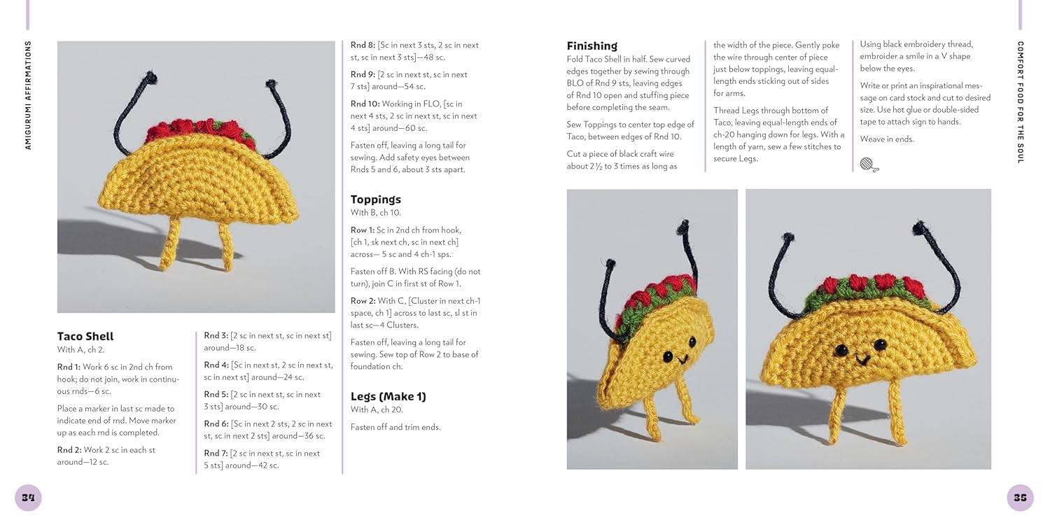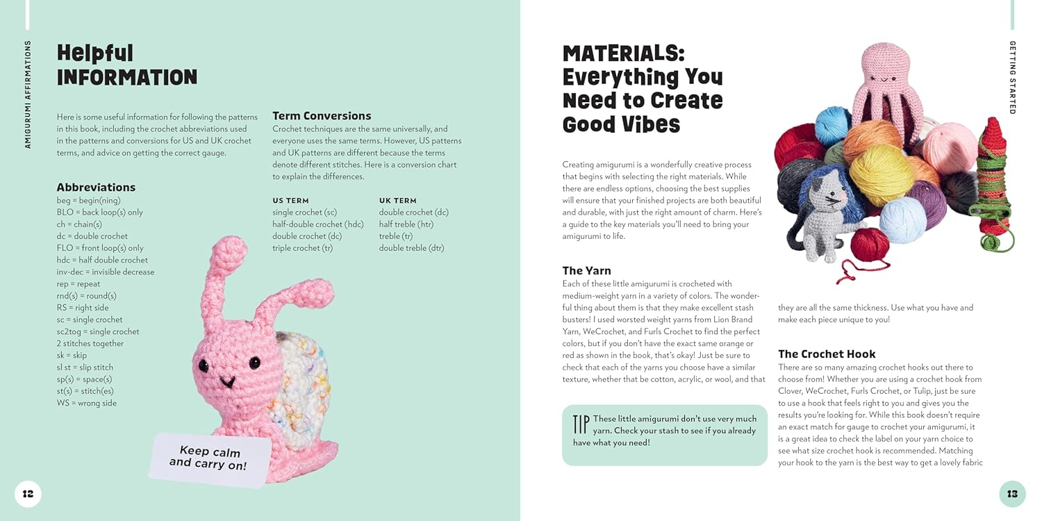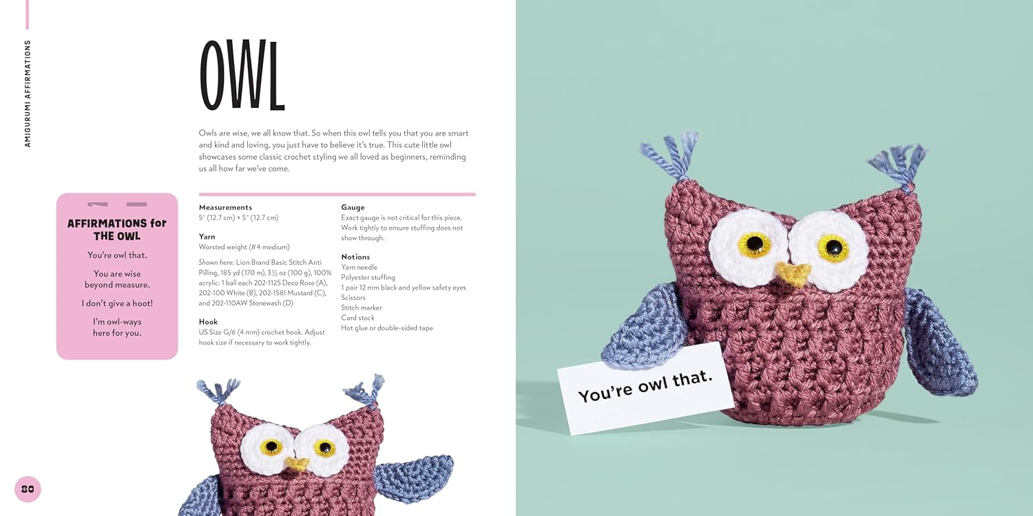 • 30 adorable amigurumi patterns: Featuring everything from tiny food items to lovable animals and playful plants, each with its own positive affirmation.