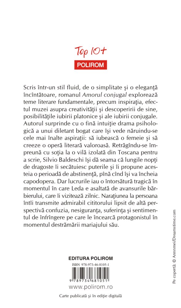 Scris într-un stil fluid, de o simplitate şi o eleganţă încîntătoare, romanul Amorul conjugal (1949) explorează teme literare fundamentale, precum inspiraţia literară, efectul muzei asupra creativităţii şi descoperirii de sine, posibilităţile iubirii platonice şi ale iubirii conjugale. Autorul surprinde cu o fină intuiţie drama psihologică a unui diletant bogat care îşi vede năruindu-se cele mai înalte aspiraţii: să iubească o femeie şi să creeze o operă literară valoroasă. Retrăgîndu-se împreună cu soţia la o vilă izolată din Toscana pentru a scrie, Silvio Baldeschi îşi dă seama că lungile nopţi de dragoste îi secătuiesc puterile şi îi propune acesteia o perioadă de abstinenţă, pînă cînd îşi va încheia capodopera. Dar lucrurile iau o intorsătură tragică în momentul în care Leda e asaltată de avansurile bărbierului, care îi vizitează zilnic. Naraţiunea la persoana întîi transmite admirabil cititorului lipsit de altă perspectivă confuzia, nesiguranţa, suferinţa şi sentimentul de înfrîngere pe care le incearcă protagonistul în momentul destrămării mariajului său.