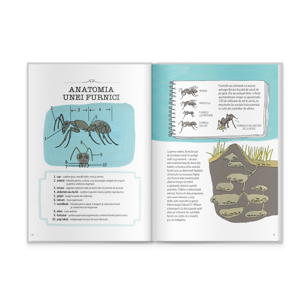 Lumea înconjurătoare abundă în fenomene fascinante. Spre exemplu, știai că tardigradele sunt microanimale care se hrănesc cu mușchi și licheni, putându-se adapta într-un interval de temperatura de la -185°C până la 185°C? Sau că unii fluturi femelă depun ouă individuale, în timp ce altele depun ciorchini de ouă? Știai că liliecii sunt singurele mamifere capabile să zboare cu adevărat? Sau că cel mai lent pește este căluțul de mare pitic? Și, mai mult decât atât, știai că poți găsi toate aceste informații uimitoare în cartea „Anatomia naturii. Curiozitățile lumii naturale”, scrisă de Julia Rothman, cu sprijinul lui John Niekrasz?