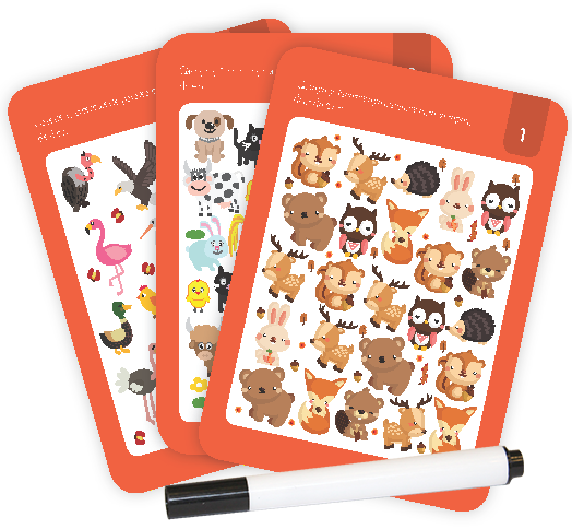 Cele 40 de fișe refolosibile antrenează spiritul de observație, dar în același timp, copilul își dezvoltă și motricitatea fină, exersând ținerea corectă a instrumentului de scris. În plus, tematica aleasă ajută copilul să recapituleze cunoștințele despre lumea animalelor.