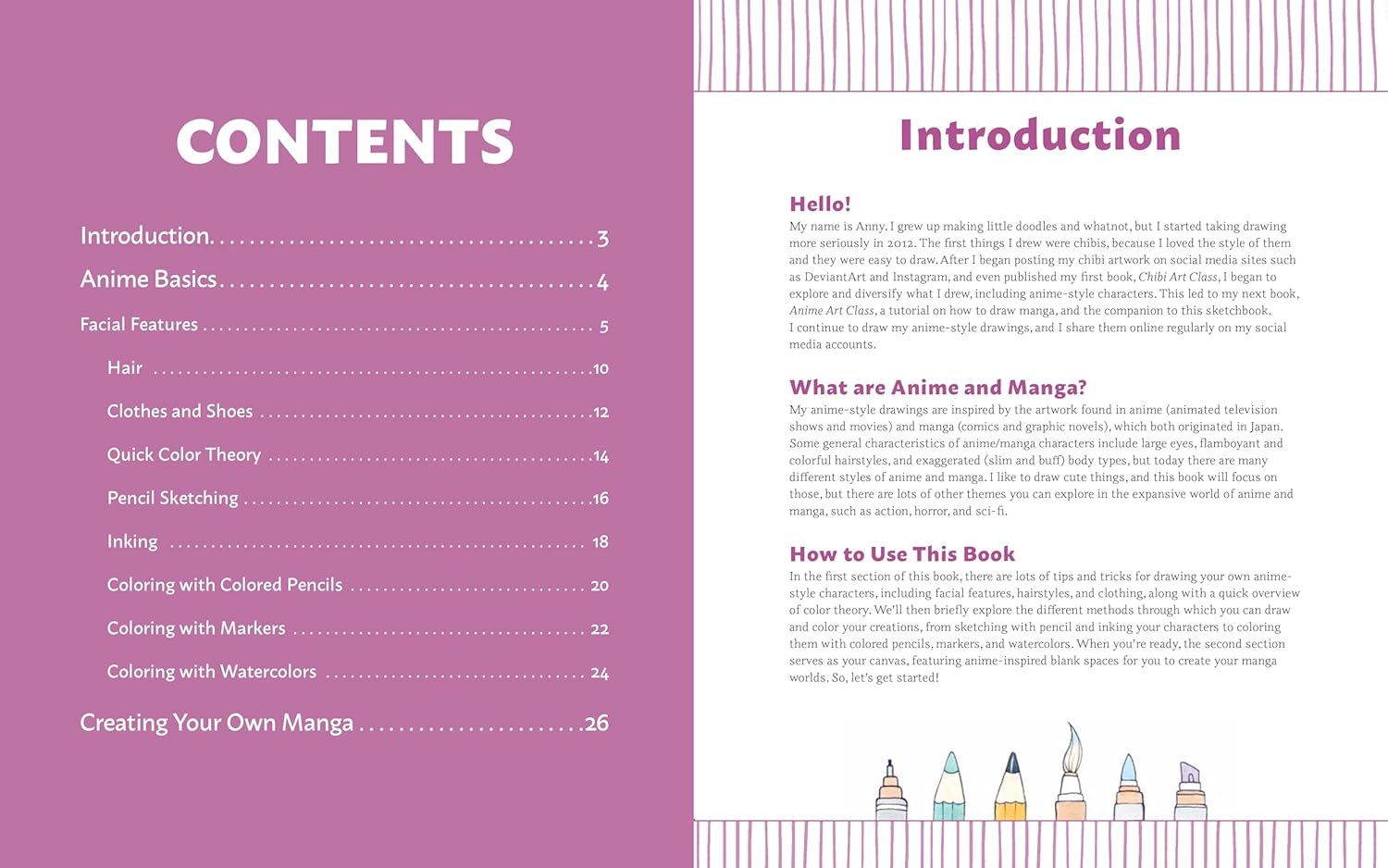An introduction to the anime and manga art formsAn anime how-to guide with tutorials on drawing facial features, clothing, and color theoryHelpful tips and tricks from Yoai on different ways to draw and color your art, from pencil sketching to using watercolorPanels, bursts, and bubbles for writing expressive textMulti-panel pages to draw the many faces of your new charactersFor fans of Yoai's Chibi Art Class and Anime Art Class, as well as aspiring anime and manga artists everywhere, the Anime Art Class Sketchbook is a unique place to create your own characters, settings, and scenes. Start drawing today your inner artist will thank you!Learn even more fun drawing techniques from Yoai with:Chibi Art Class, Mini Chibi Art Class, Anime Art Class, and Anime + Chibi Art Class.