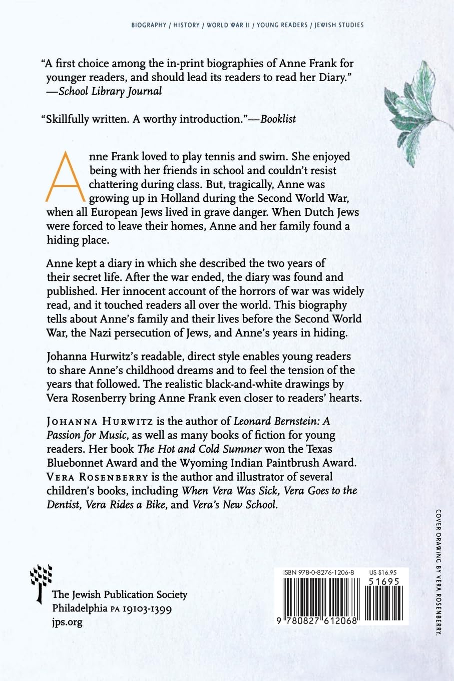 Anne Frank loved to play tennis and swim. She enjoyed being with her friends in school and couldn't resist chattering during class. But, tragically, Anne was growing up in Holland during the Second World War, when all European Jews lived in grave danger. When Dutch Jews were forced to leave their homes, Anne and her family found a hiding place.