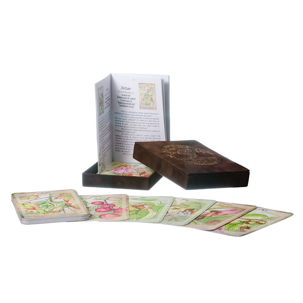 Conținute într-o elegantă cutie din catifea de culoarea pământului, lucrată manual în legătorie de artă, cartolinele cu mesajele celor 33 de Arbori Sacri și cărțulia care le însoțește sunt un dar binecuvântat, un cadou divin pentru suflet și pentru minte.