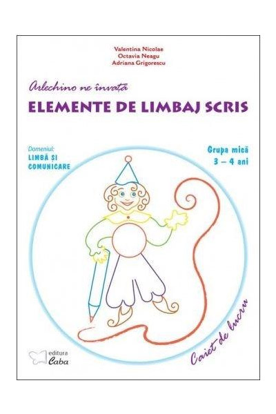 Arlechino ne invata elemente de limbaj scris - caiet de lucru pentru 3-4 ani - carte educativa pentru cei mici