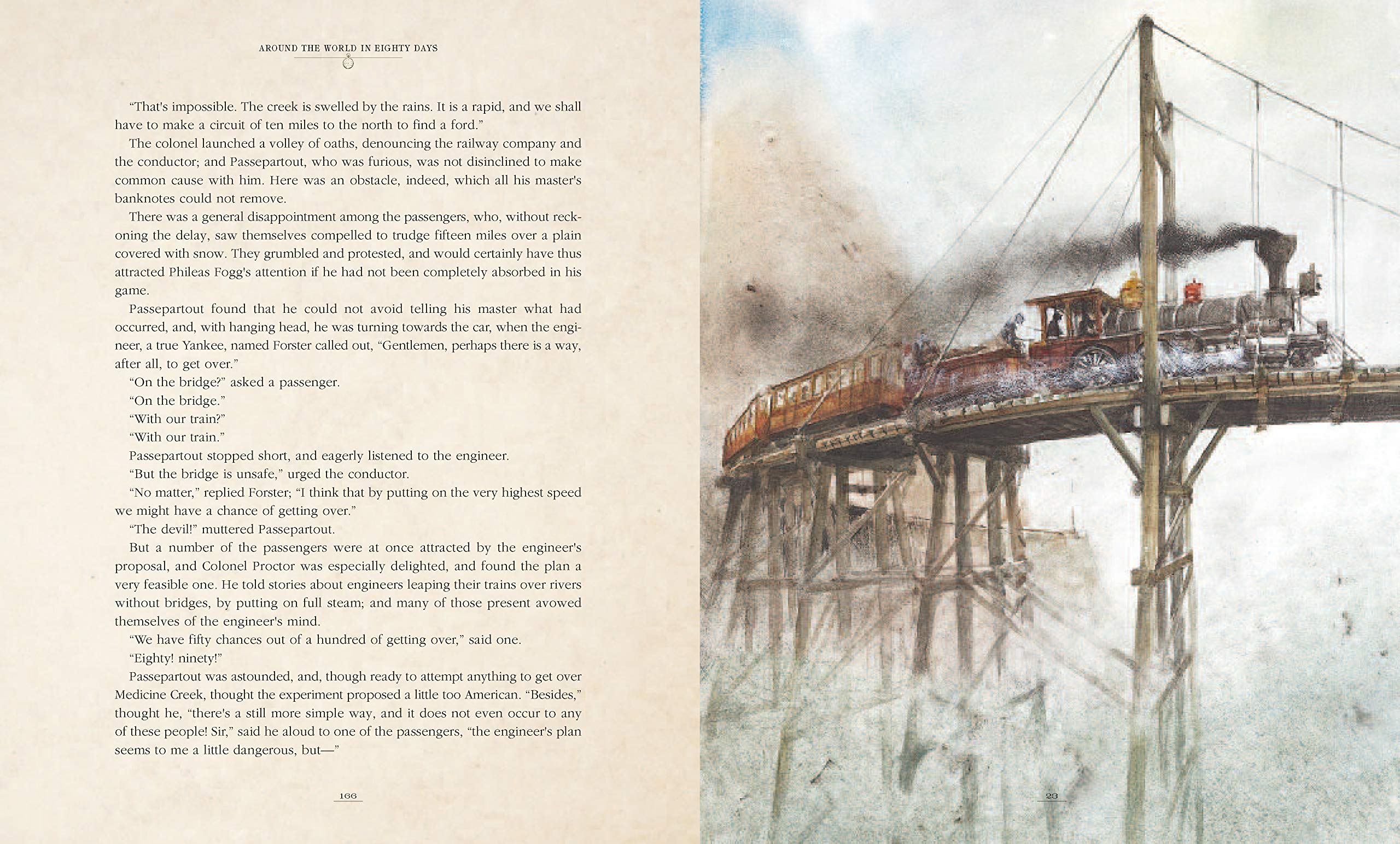 The acrobatic and inquisitive Passepartout can seldom keep out of trouble. While he is pursued by irate Indian priests, drugged in an opium den, and saving a runaway train, his master's composure is never broken as the hours tick away on his precisely accurate pocket watch.