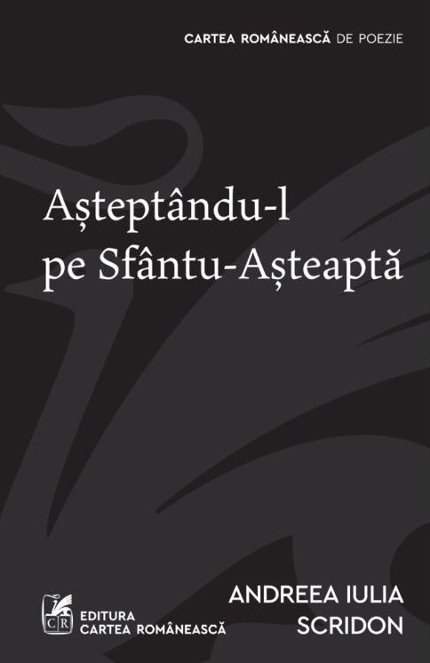 În ochii mei, Andreea lulia Scridon este fenomenală în fiecare mişcare poetică, am urmărit cât de flexibilă e pe scenă și am avut onoarea de a o avea ca invitată la diverse lansări şi dialo-guri. În Aşteptându-l pe Sfântu-Aşteaptă este o povestaşă desăvârşită, o Yesterday Kind of Girl într-un Cluj care îşi închide toate spitalele de păpuşi, apoi îşi umple dorul într-o Philadelphia 2003 sub petale de cireș cu toate păpuşile ei, Mariana, Matrioșca, chinezoaica Yoo și fiul ei, Cain, ca în final să-şi trădeze tristețea în fiecare gest. Tărâmul ei este magic, dar foarte pământesc în acelaşi timp; trecutul şi prezentul se întrepătrund unde lumina caută fericirea în întuneric. Citiți-o şi bucurați-vă de ea, este unică precum o făptură arhaică și efemeră care ne conduce de mână într-o lume mult mai bună decât a noastră: memoria, mintea şi inima ei. -- LENA CHILARI