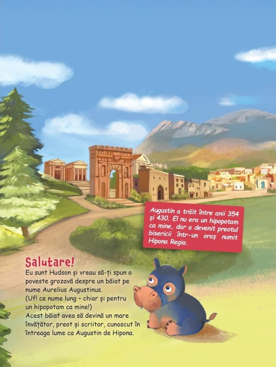 In aceasta povestioara fascinanta, un hipopotam istet iti povesteste despre acest tinerel care nu voia sa asculte sfaturile mamei sale de a-L urma pe Isus. In schimb, Augustin si-a dorit faima si bogatie si a ajuns pe cele mai mari scene ale lumii. Mintea lui sclipitoare si talentul de a vorbi l-au facut celebru, dar cu cat era mai cunoscut, cu atat in inima lui era tot mai nelinistita. Oare isi cautase fericirea in locuri gresite?