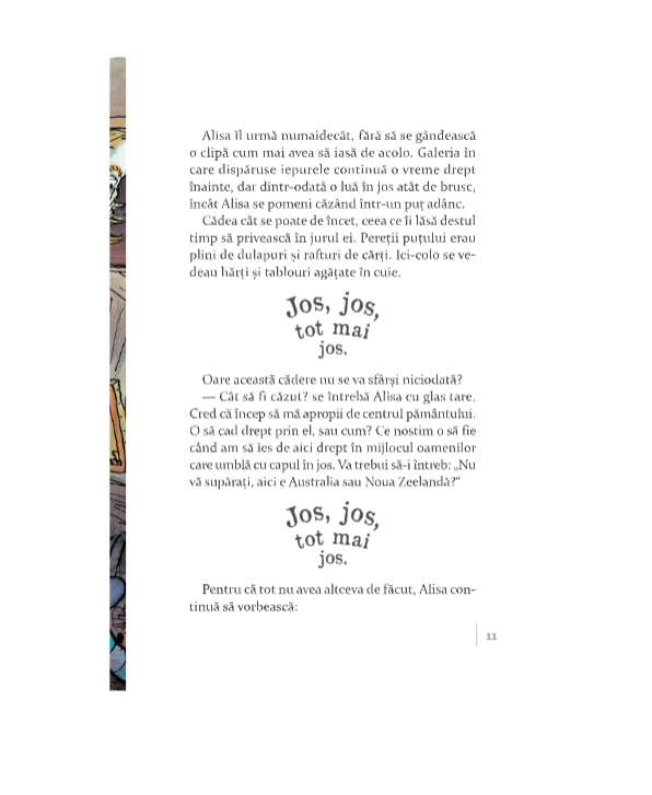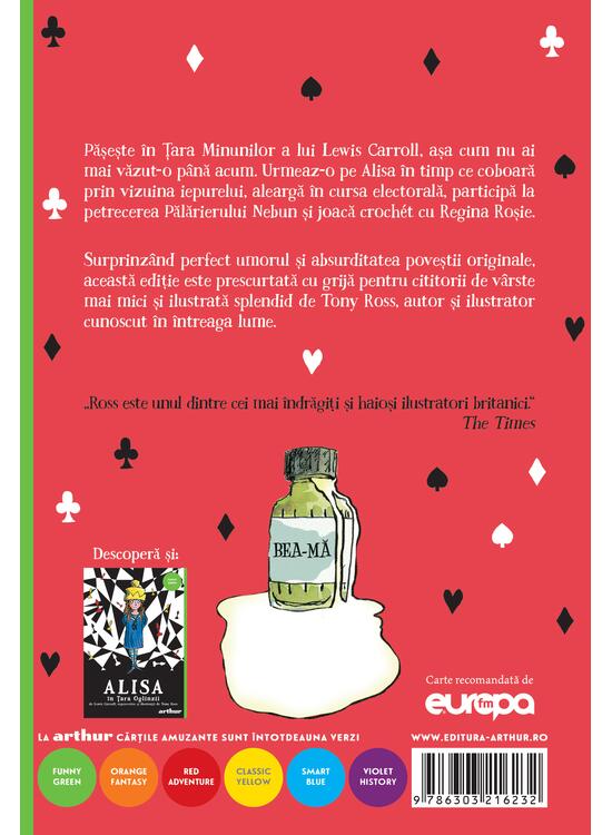 Surprinzând perfect umorul și absurditatea poveștii originale, această ediție este prescurtată cu grijă pentru cititorii de vârste mai mici și ilustrată splendid de Tony Ross, autor și ilustrator cunoscut în întreaga lume.