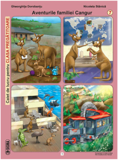 Va framanta cautarea unor contexte motivante pentru abordarea integrata la clasa pregatitoare? Caietul Aventurile familiei Cangur va invita la construirea unor proiecte de invatare in jurul unei calatorii. Itinerariul personajelor va ofera ocazii inedite pentru activitati semnificative de: comunicare, relationare, realizare de compozitii individuale, in cadrul unor subiecte familiare precum programul zilnic, mijloacele de transport, familia, grupul, partile componente ale unui animal.Caietul aduce un bogat suport intuitiv pentru contextualizarea adunarii, scaderii, numararii, completarii de siruri, recunoasterii figurilor geometrice, trasarii literelor x, y, w. Copertele duble de carton pot fi decupate dupa contur, transformandu-se astfel in carti de joc cu imagini, semne de circulatie, desene, simboluri. Va rezulta si un suport pentru elaborarea unei invitatii!