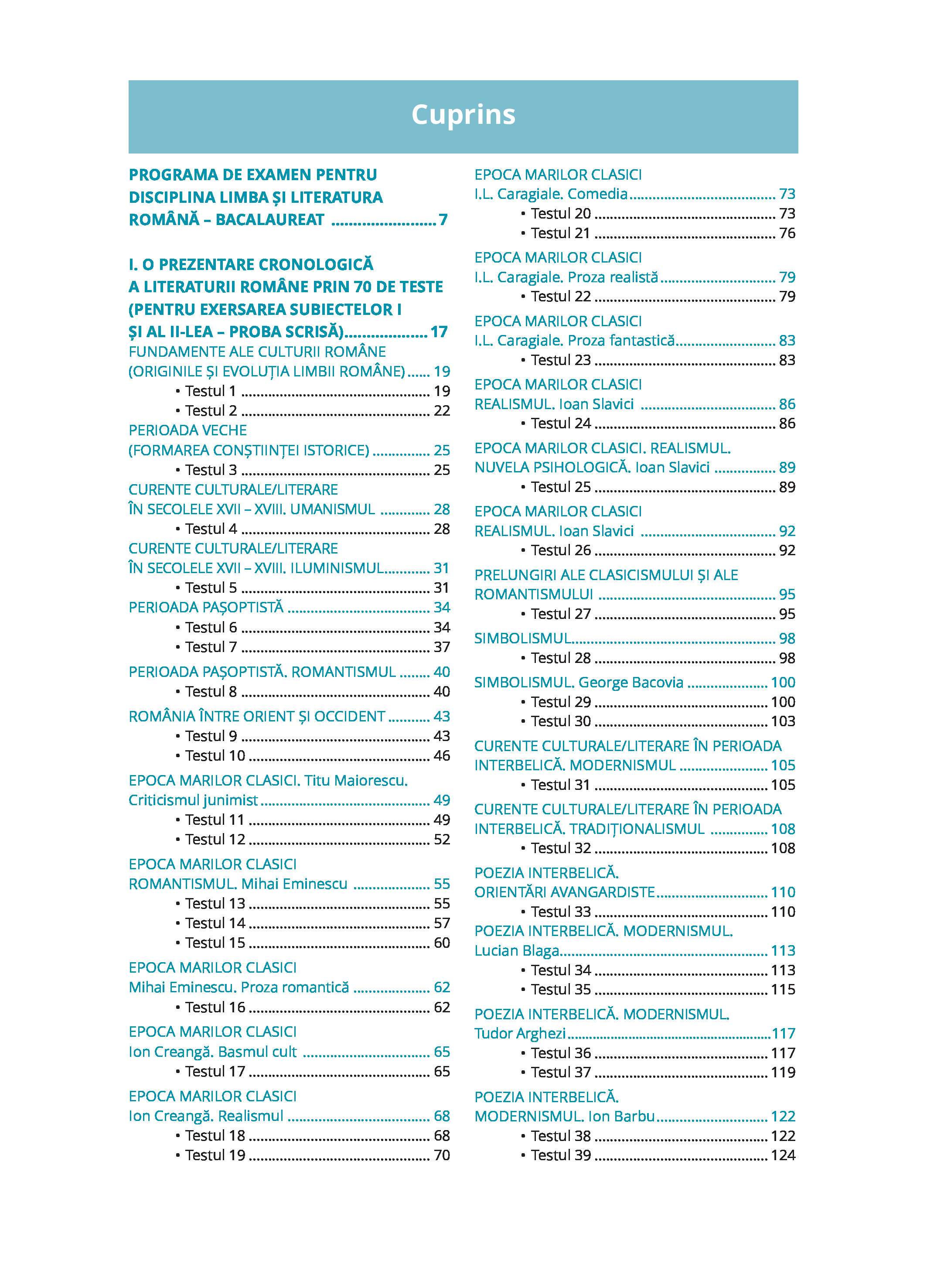 Lucrarea este realizată în conformitate cu Programa de Bacalaureat în vigoare pentru disciplina Limba şi literatura română, aprobată prin O.M. nr. 4923/2013.