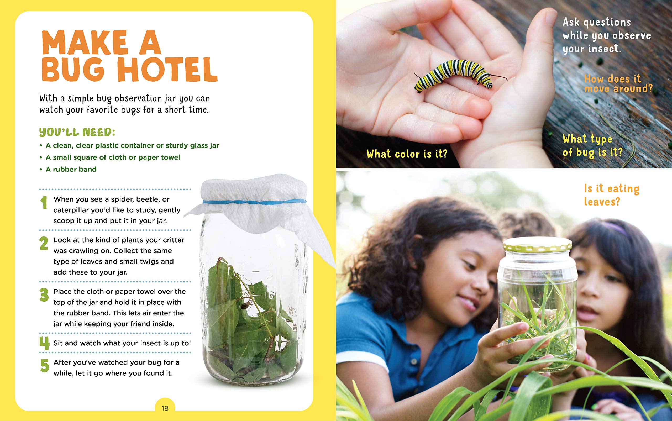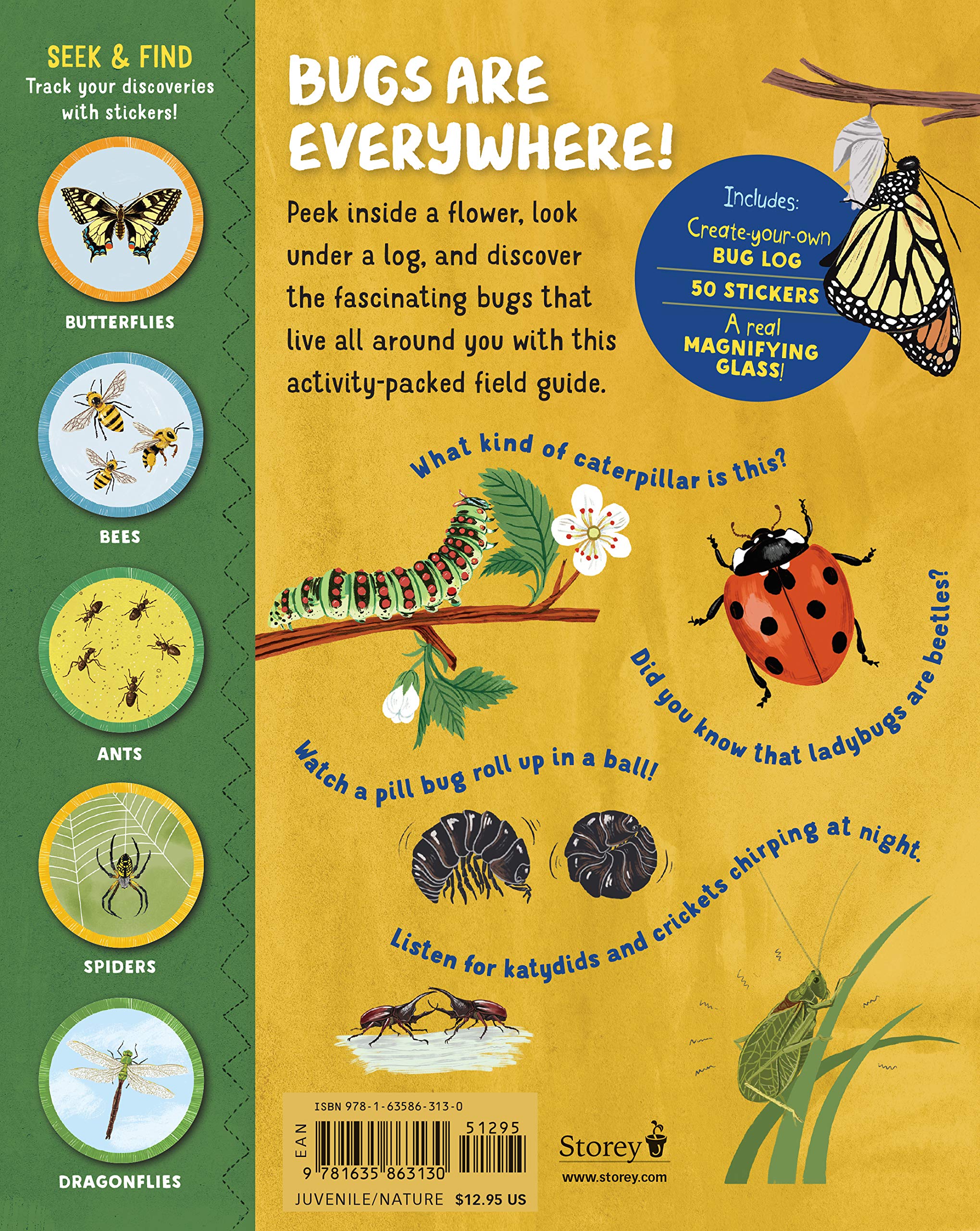 The fourth book in the best-selling Backpack Explorer series, this interactive take-along book invites kids to head out on a bug-seeking adventure to identify insects, learn about bug lives and habits through hands-on activities, and track discoveries. Head outside and get the buzz on bugs! Packed with educational prompts and activities, this fourth book in the Backpack Explorer series encourages junior naturalists to spot insects while on a walk in the woods, playing in a park, or searching right outside their front door. Twelve interactive field guides help young seekers identify fliers, crawlers, and pollinators, while sensory scavenger hunts, projects such as Weave a Web or Make a Bug Hotel, and cool bug facts boost the insect intrigue. Equipped with a real magnifying glass, stickers, and a log for recording sightings, this book is the perfect companion for any nature adventure. AGES: 4 to 8 SELLING POINTS: Best-selling nature activity series. These books are quickly gaining a winning reputation for their kid-approved format and perfect blend of learning and fun, with interactive features including dozens of colourful ID photos, nature stickers, a real magnifying glass, and a log for recording discoveries. Kids love bugs. Searching for bugs gives kids an opportunity to unplug, tune in their senses, and learn about the amazing insects all around them. Supports STEAM science curriculum. Backpack Explorer: Bug Hunt taps into children's natural curiosity, with field guides, science activities, and sensory and nature games. Photographs and illustrations throughout; includes 3 sticker sheets, magnifying glass, and fold-out journal