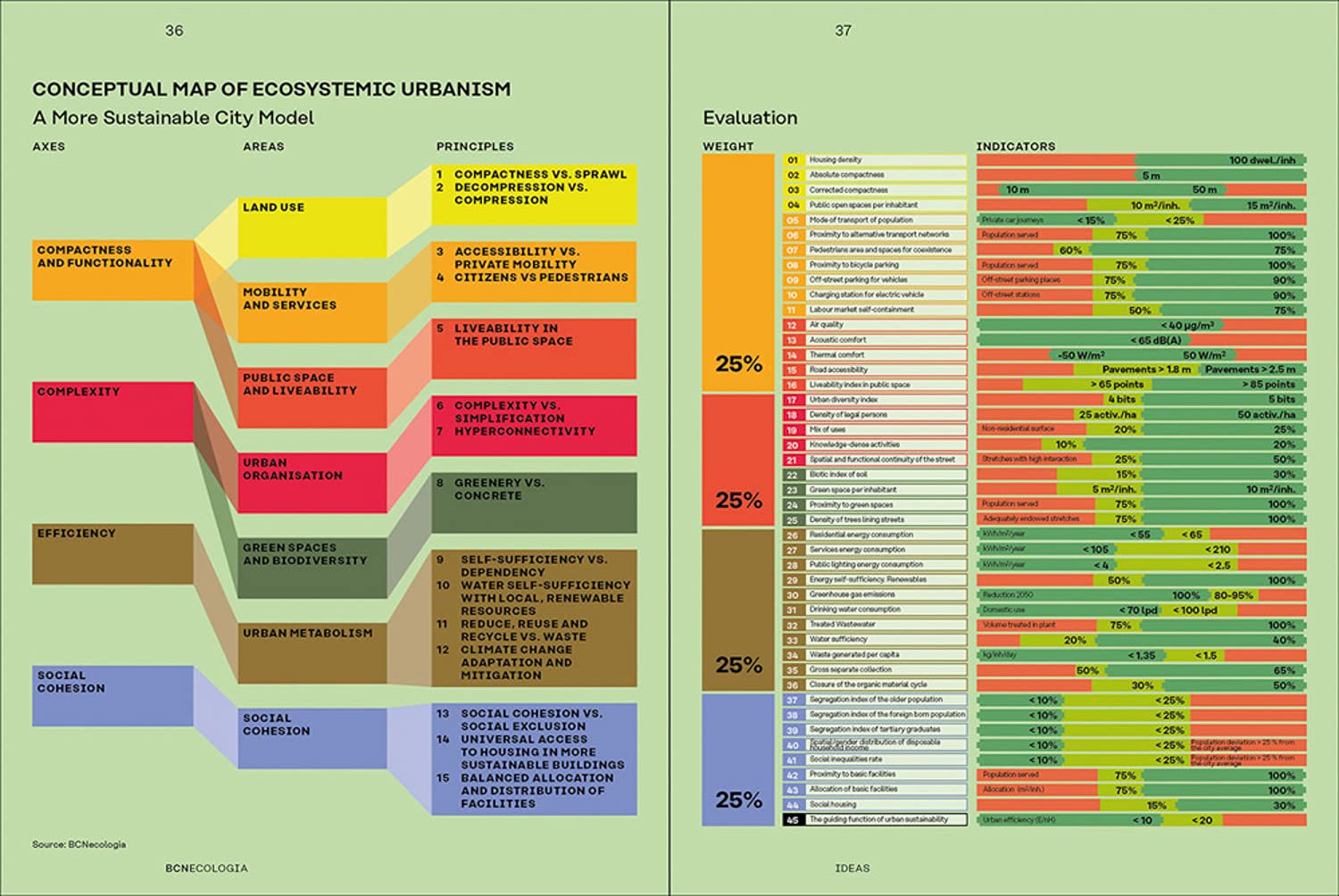 BCNecologia (the Urban Ecology Agency of Barcelona) is a public consortium consisting of the City Council of Barcelona, the Municipal Council and Metropolitan Area of Barcelona and the Barcelona Provincial Council. BCNecologia has played a key role in defining a new urban model for Barcelona--a model that has placed the city at the forefront of worldwide urban transformations--by designing a superblock and orthogonal bus network strategy for the Catalan capital. BCNecologia: 20 years of the Urban Ecology Agency of Barcelona looks back at over 100 projects carried out by the Agency in cities across the world. These studies are presented through a tree with five themed branches that describe various sustainability indicators, superblock-based urban regeneration plans, new mobility and public space planning models, and environmental and circular economy-oriented proposals.