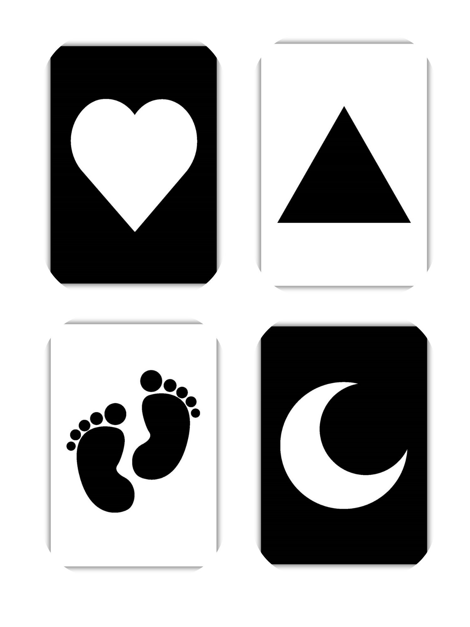 Pachetul “FORME” conţine 32 de imagini alb-negru cu forme simple şi sunt potrivite de la 0 luni, atunci cȃnd bebe vede doar contrastele puternice.