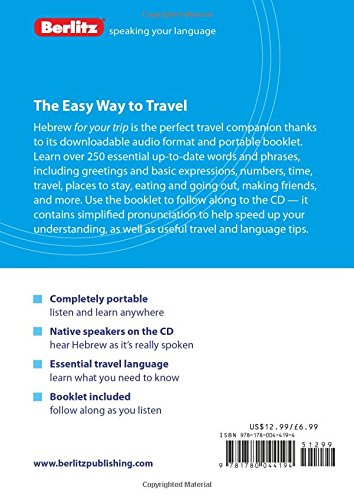 Being able to speak a little of the local language enhances any trip abroad, and this beginner-level Hebrew audio course contains all the key travel phrases you need to communicate with confidence. The 60-minute audio CD features native Hebrew speakers using phrases you're likely to encounter in typical travel situations. In no time, you will be able to meet and greet people, be familiar with numbers, time and days of the week, find your way around transport, shops, and restaurants, and make new friends. The pack includes a sturdy booklet with a phonetic transcription of the phrases on the CD, plus handy tips and key word reminders. The contents of the CD can be easily downloaded to your iPod or MP3 player.