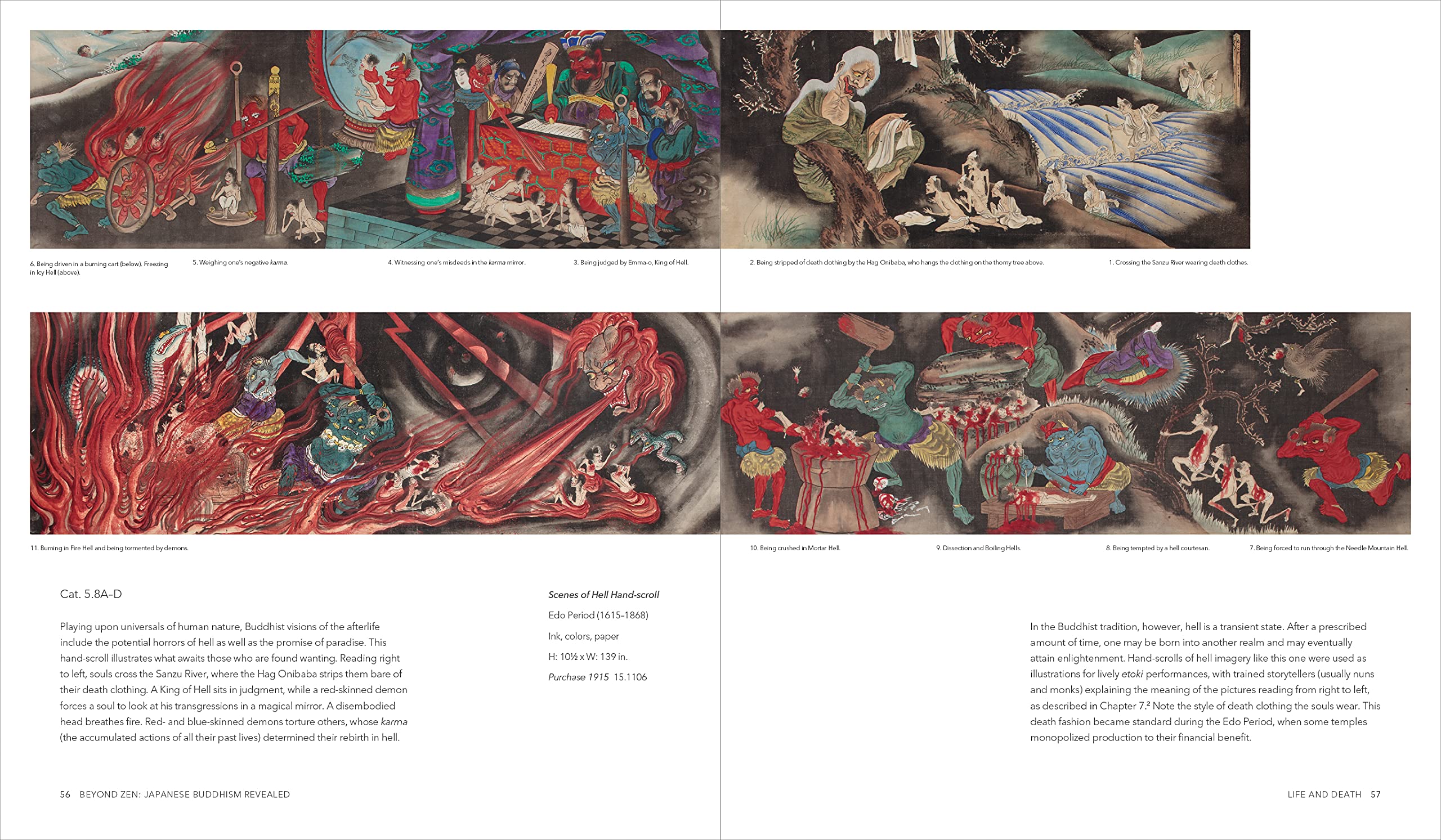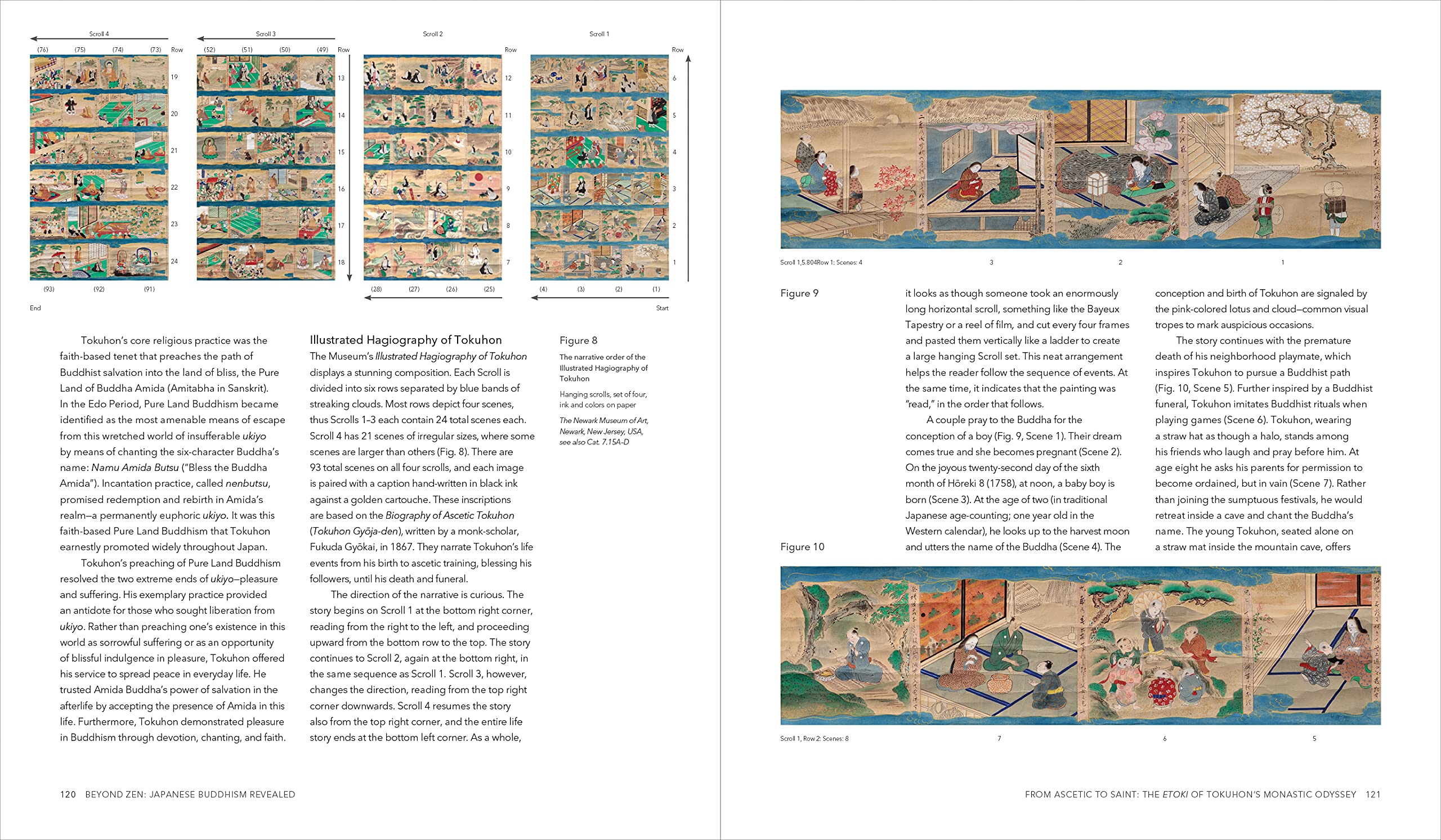 This is is a unique and fascinating visual history of Japanese Buddhist art largely dating from the Edo period (1600–1868) to the present day, through one of the finest collections in the USA. The richly\-illustrated text offers a concise introduction to diverse Japanese Buddhist practices and the central role art plays in them. Showcasing over 130 ornate and gold leafed paintings, textiles, ceramics, and sculptures from the Newark Museum’s extensive collection of Japanese Buddhist art, this volume provides access to hitherto unpublished masterpieces. It is divided into five parts: Buddha, Buddhas, and Bodhisattvas; Life and Death; Health and Wealth; Teachers and Students; and Tea Aesthetics and Implements. An essay, by guest author Dr. Ikumi Kaminishi of Tufts University, explores the tradition of illustrated storytelling (etoki) primarily performed by nuns in conjunction with painted narrative scrolls. Kaminishi accomplishes this through a detailed discussion of the Museum’s complete four painting set of the hagiography of Tokuhon (1758–1818) while posing a Buddhist reading of ukiyo the “floating world”. Edited by Katherine Anne Paul Contributions by Katherine Anne Paul and Ikumi Kaminishi Project Editor: Catherine Evans, The Newark Museum of Art Preface by Linda C. Harrison, The Newark Museum of Art’s Director \x26 CEO