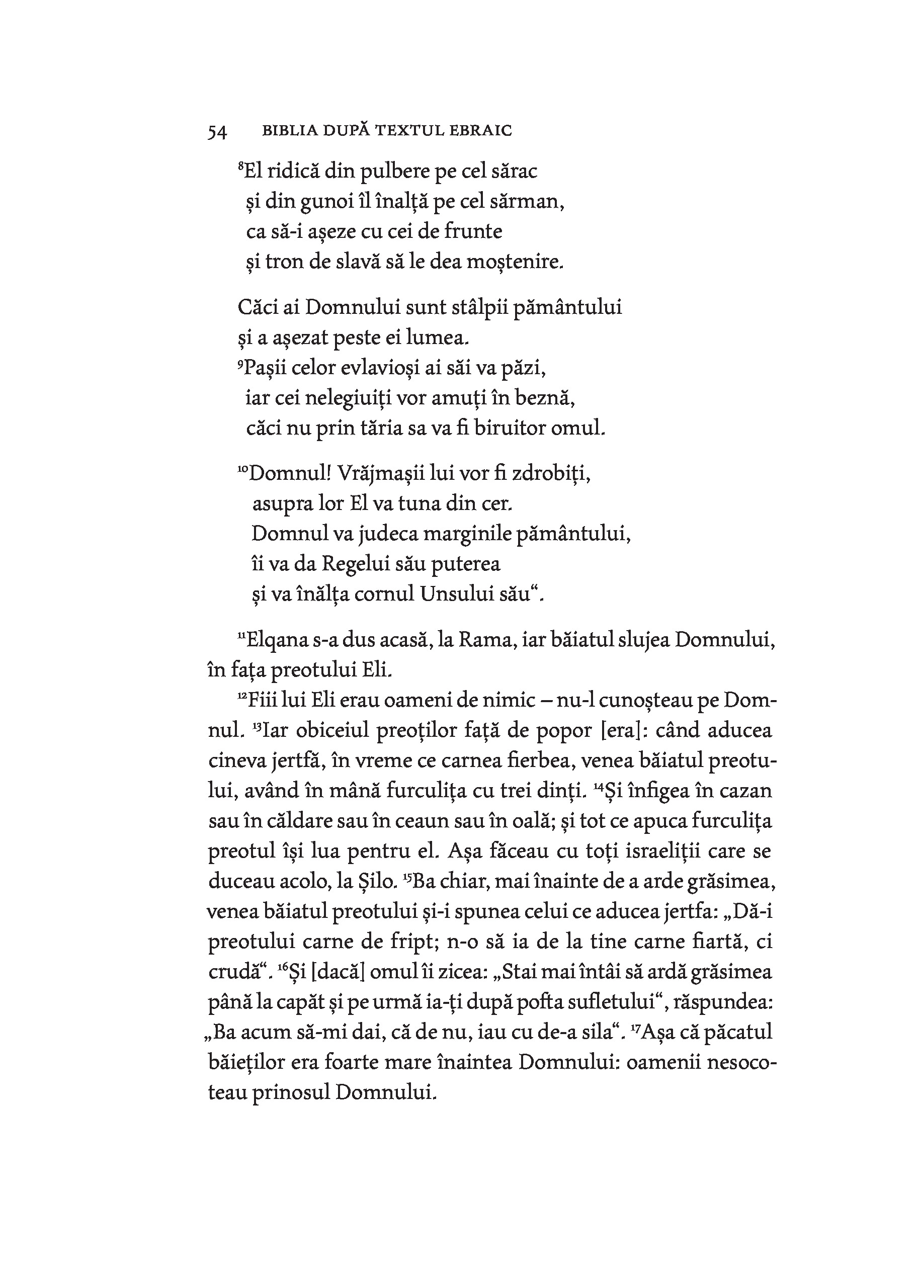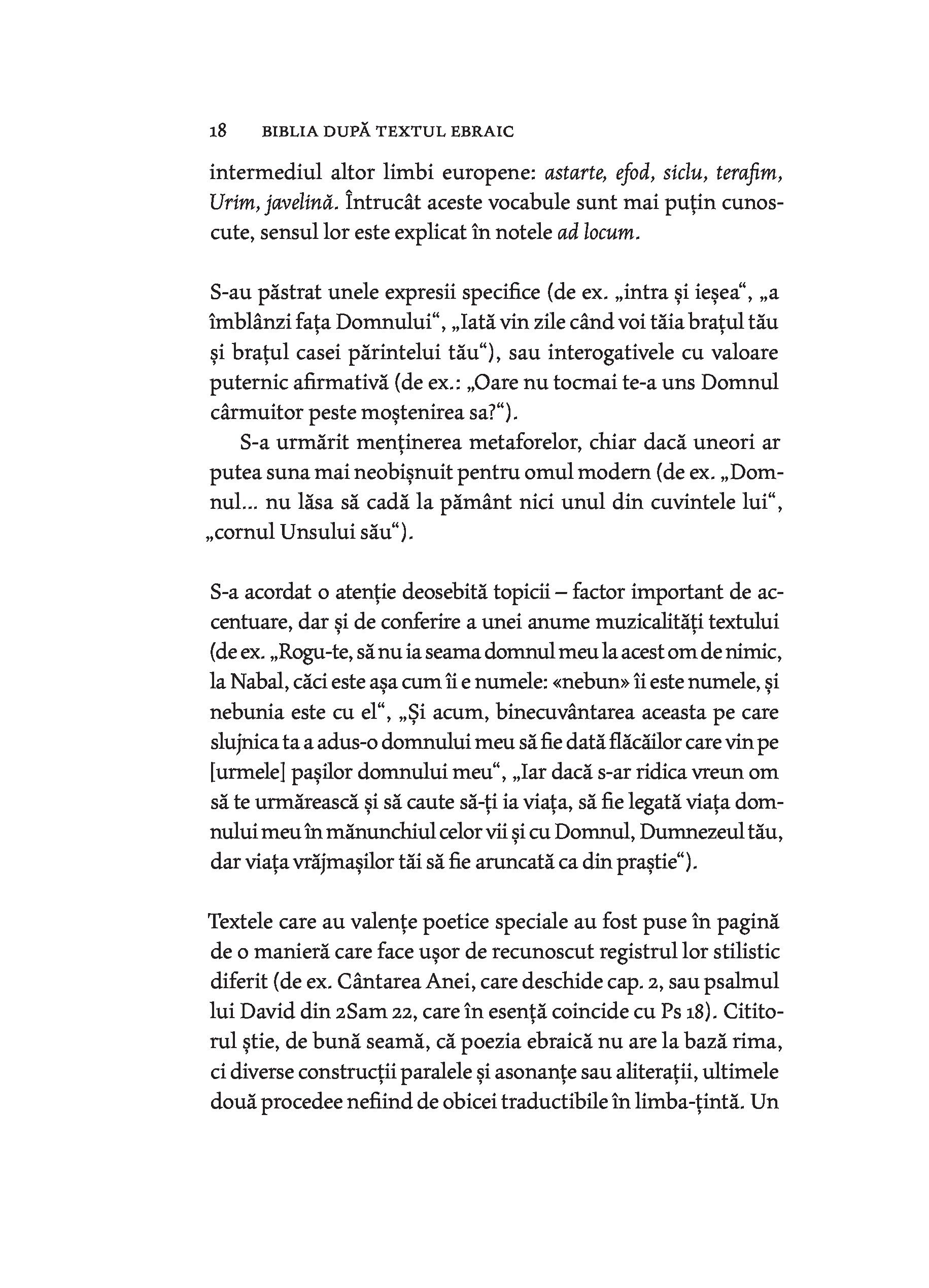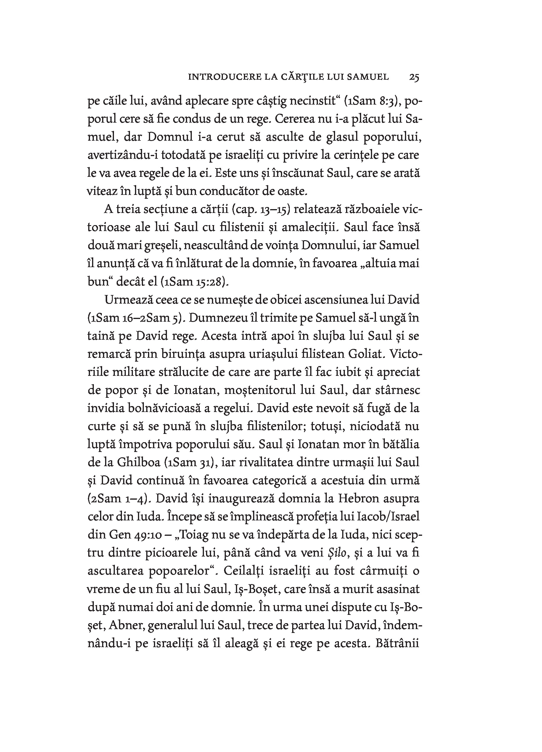 Volumul de față, 1 și 2 Samuel, este al cincilea dintr-o serie care va cuprinde traducerile tuturor textelor Bibliei ebraice și al doilea din secțiunea a doua a acesteia, Neviim („Profeții“), însoțite de studii introductive, note și comentarii.