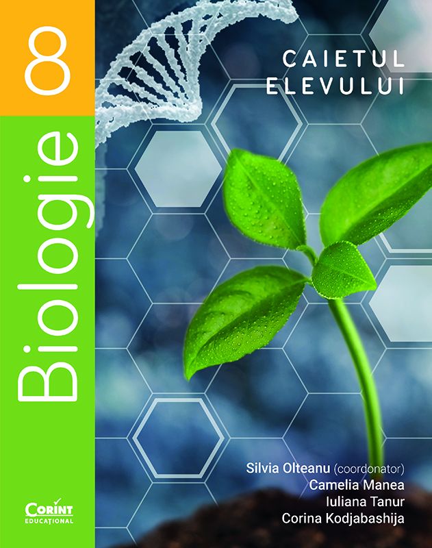 Biologie. Caietul elevului pentru clasa a VIII-a este conceput pe baza programei școlare de biologie pentru a fi utilizat pe tot parcursul anului școlar, înlocuind caietul de lucru obișnuit. În deschiderea fiecărei lecții este propus un spațiu destinat realizării unei scheme mentale, necesare pentru fixarea cunoștințelor, iar sistematizarea acestora se poate face prin completarea de către elev a textelor lacunare cu cuvintele-cheie propuse.