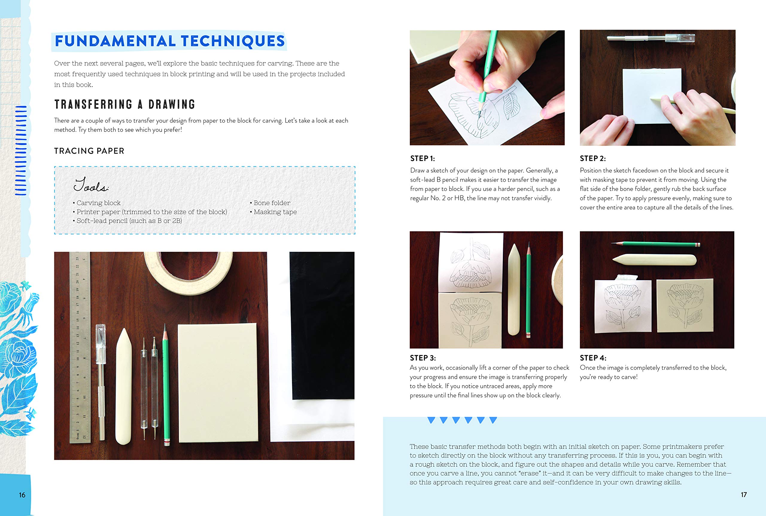 Following an introduction to essential materials, such as printmaking inks, linoleum blocks, carving tools, and papers, Block Print for Beginners demonstrates how to get from uncarved block to finished print, including transferring a drawing, carving the block, working with inks, and achieving the best print results. Once comfortable with the basics, aspiring printmakers can move on to explore a series of step-by-step tutorials for creating a variety of lino prints with blocks they can use over and over again.
