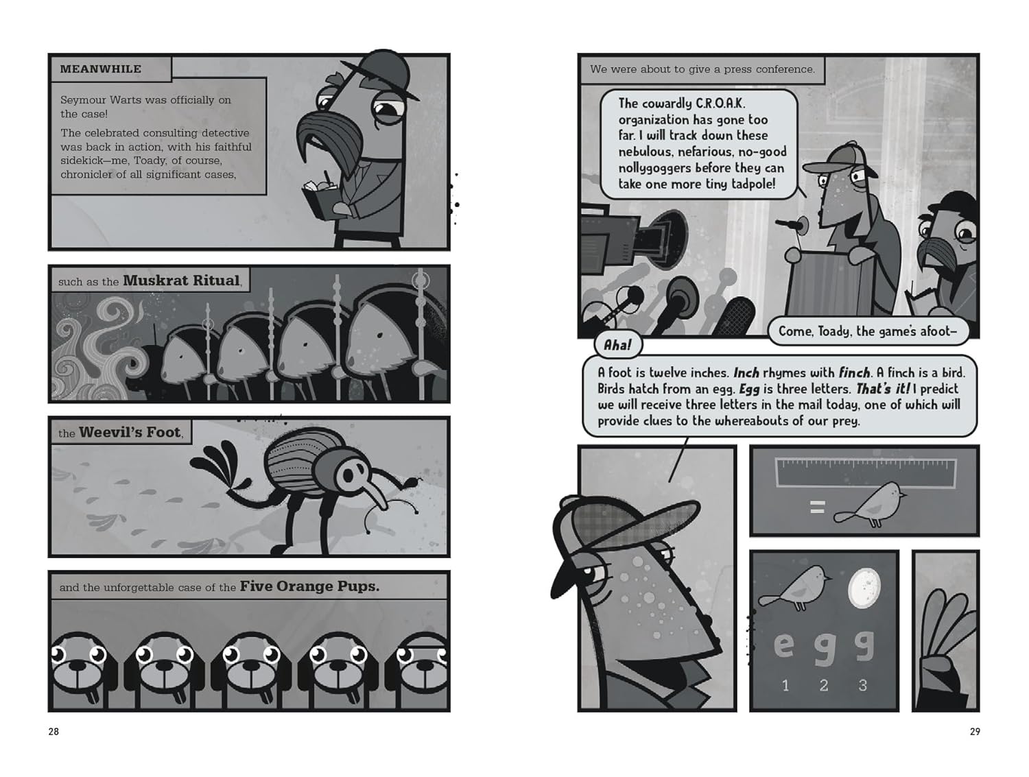 Finder the tree frog absolutely loves solving mysteries. So when all the animals in Belly Acre Bog mysteriously disappear overnight, Finder and her friends Chopper and Keeper are toad-ally on the case. But when Seymour Warts, the world's greatest detective and Finder's hero, arrives on the scene and begins his own investigation, the young creature finders soon realise that this mystery could be even bigger than their little bog!